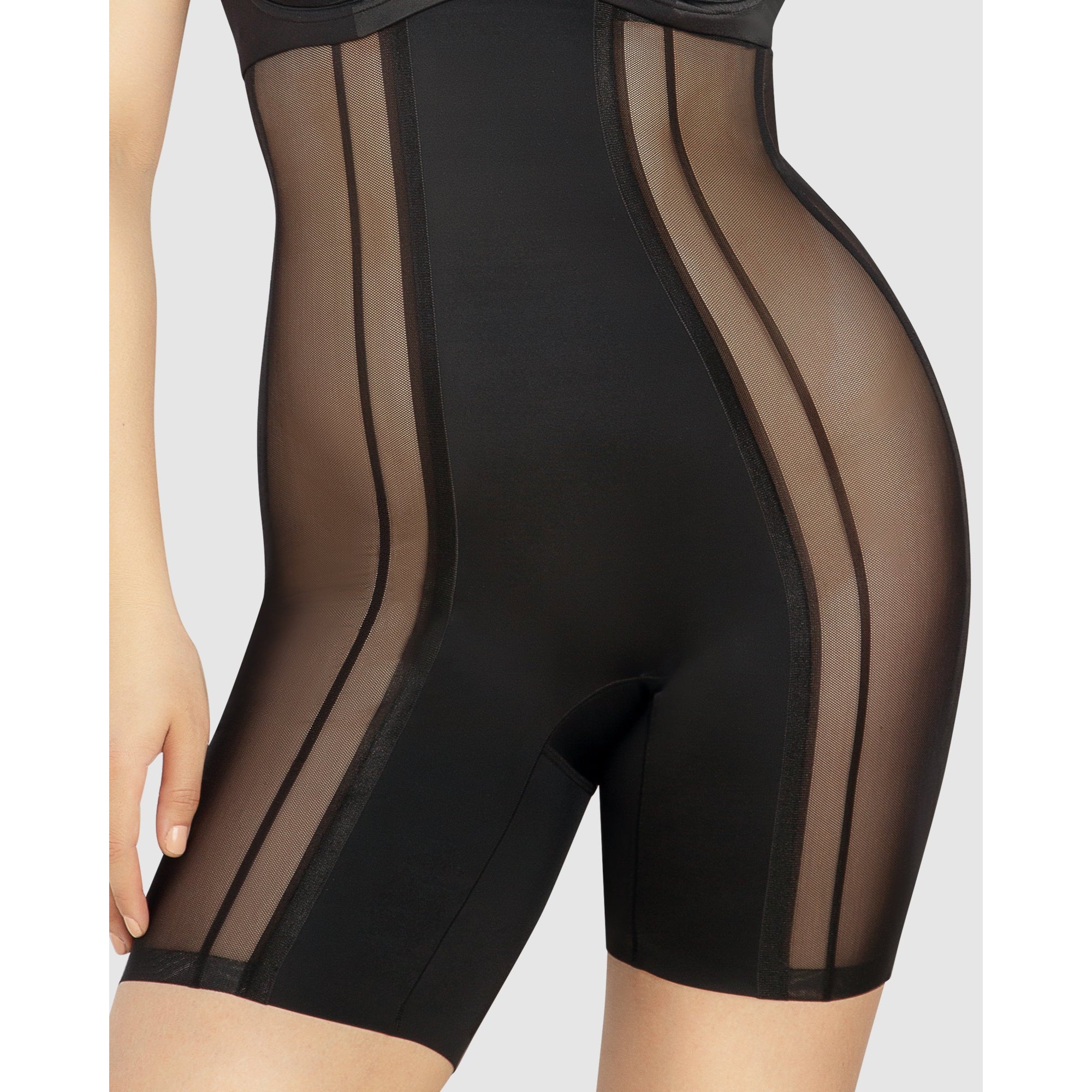 With advanced bonded seam technology and an ultra-breathable sheer mesh construction, this high waist shaping short feels barely there yet still delivers a noticeably sleeker look under clothing. Light tummy and back control panels provide the shaping, and thanks to the exceptionally high waistband, you'll see the smoothing effects of this slimming short all the way from bra band to mid-thigh!