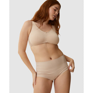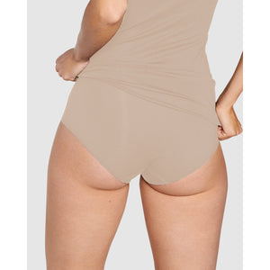 Move aside traditional women's cotton underwear, we've found something even softer and comfier: this high waist brief which blends together classic cotton with modern micromodal, a luxuriously-fine fabric that's made from plant cellulose. It's also a seamless brief, with no elastic trims at the waist or leg openings, so it will look invisible even under fitted clothing.