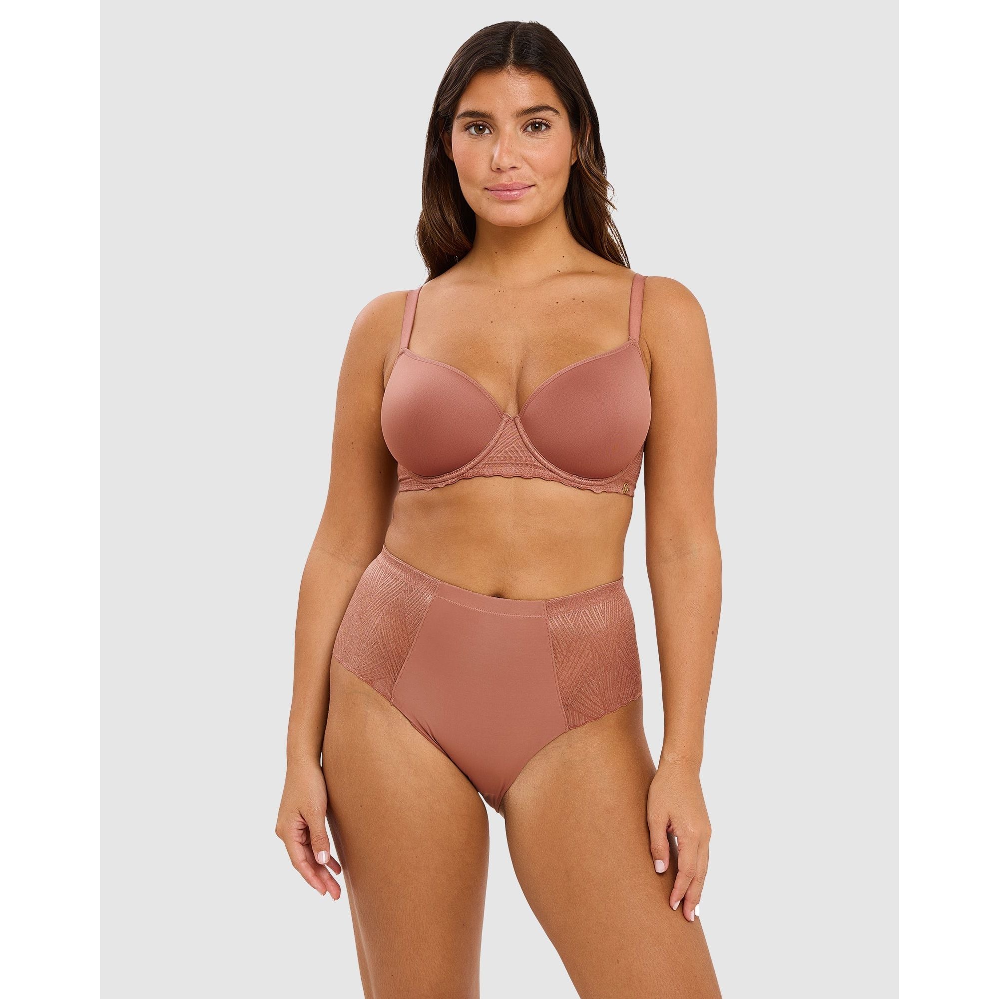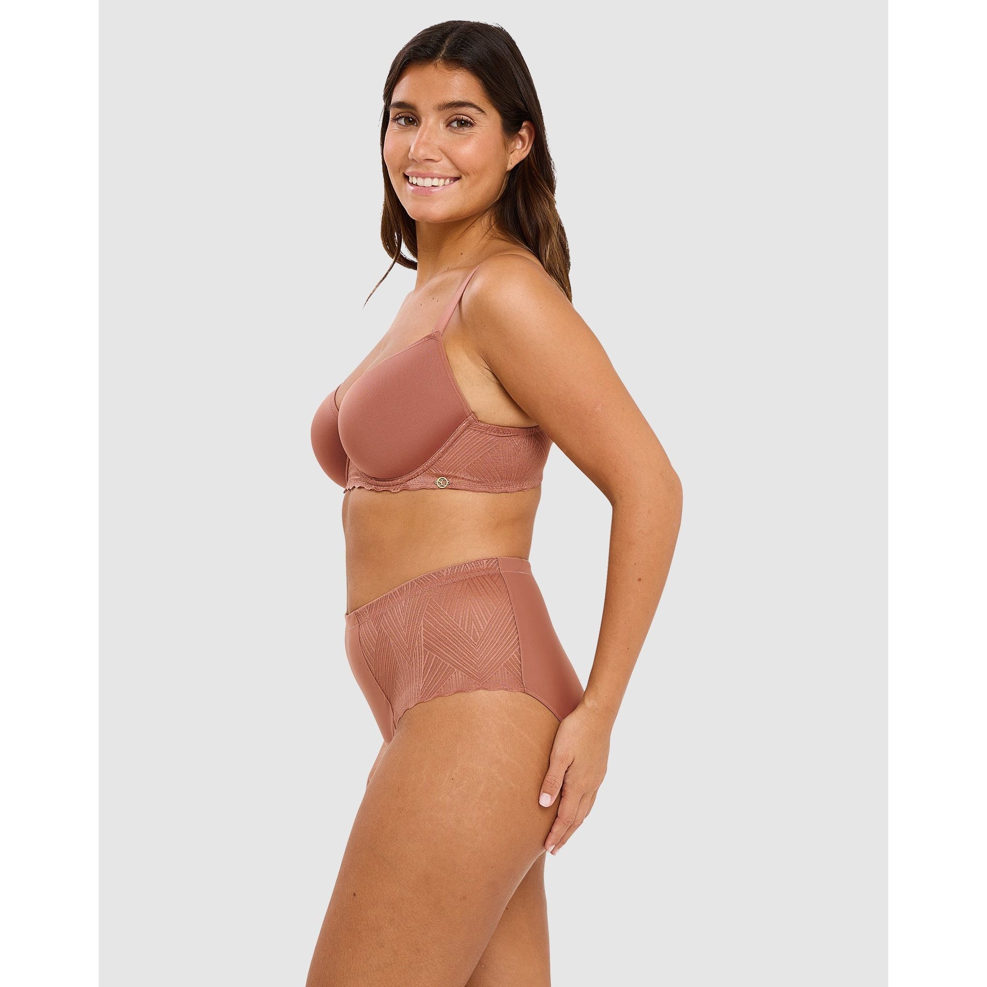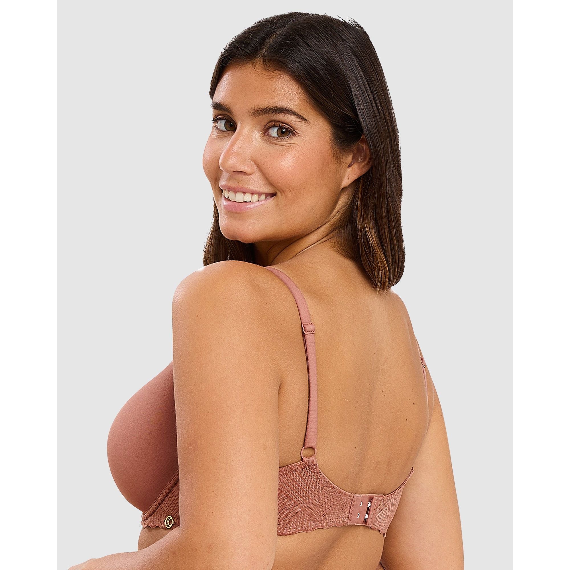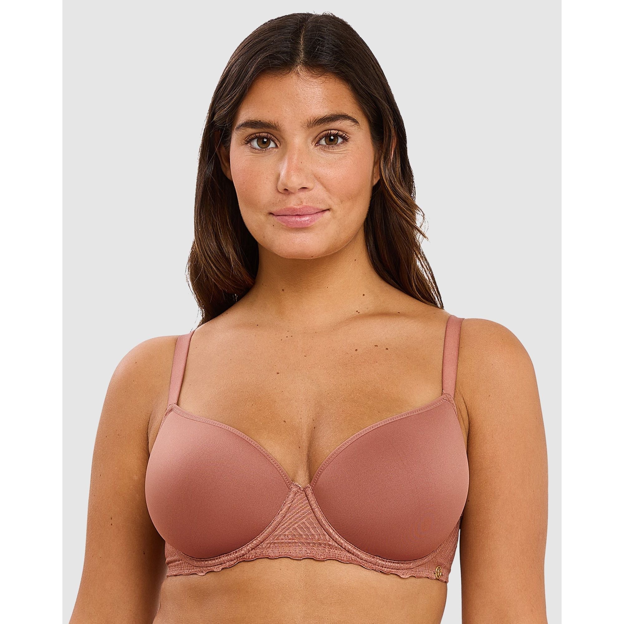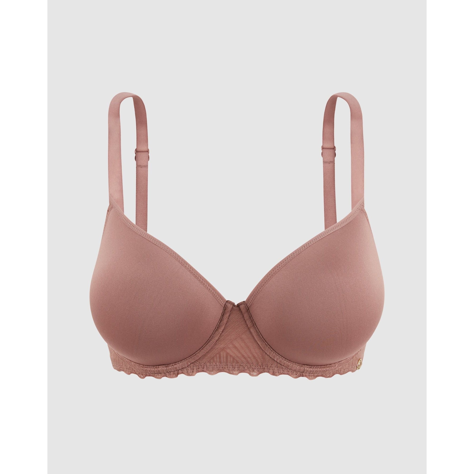 Thanks to moulded spacer cups that are thin and breathable yet still contour your bust, this t-shirt bra is simply perfect for everyday wear - it's comfortable, supportive and creates a smooth, rounded shape under your clothing without adding any bulk. And with a bra band covered with graphic lace plus a golden 'SC' charm at one side, it's pretty too!