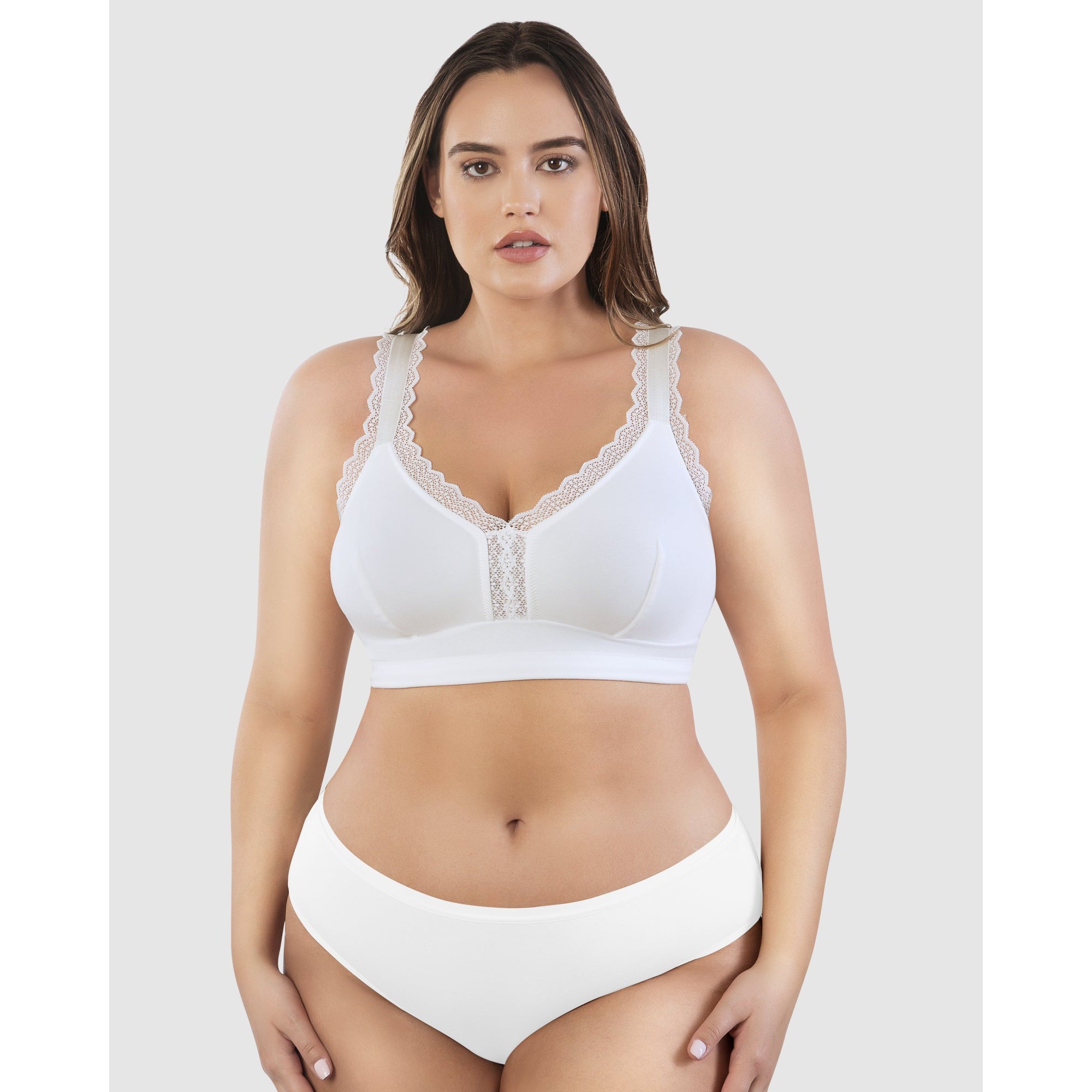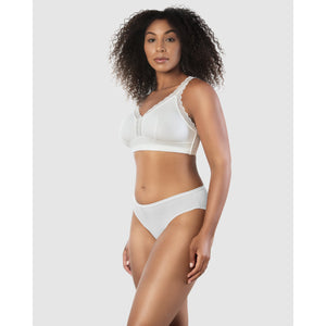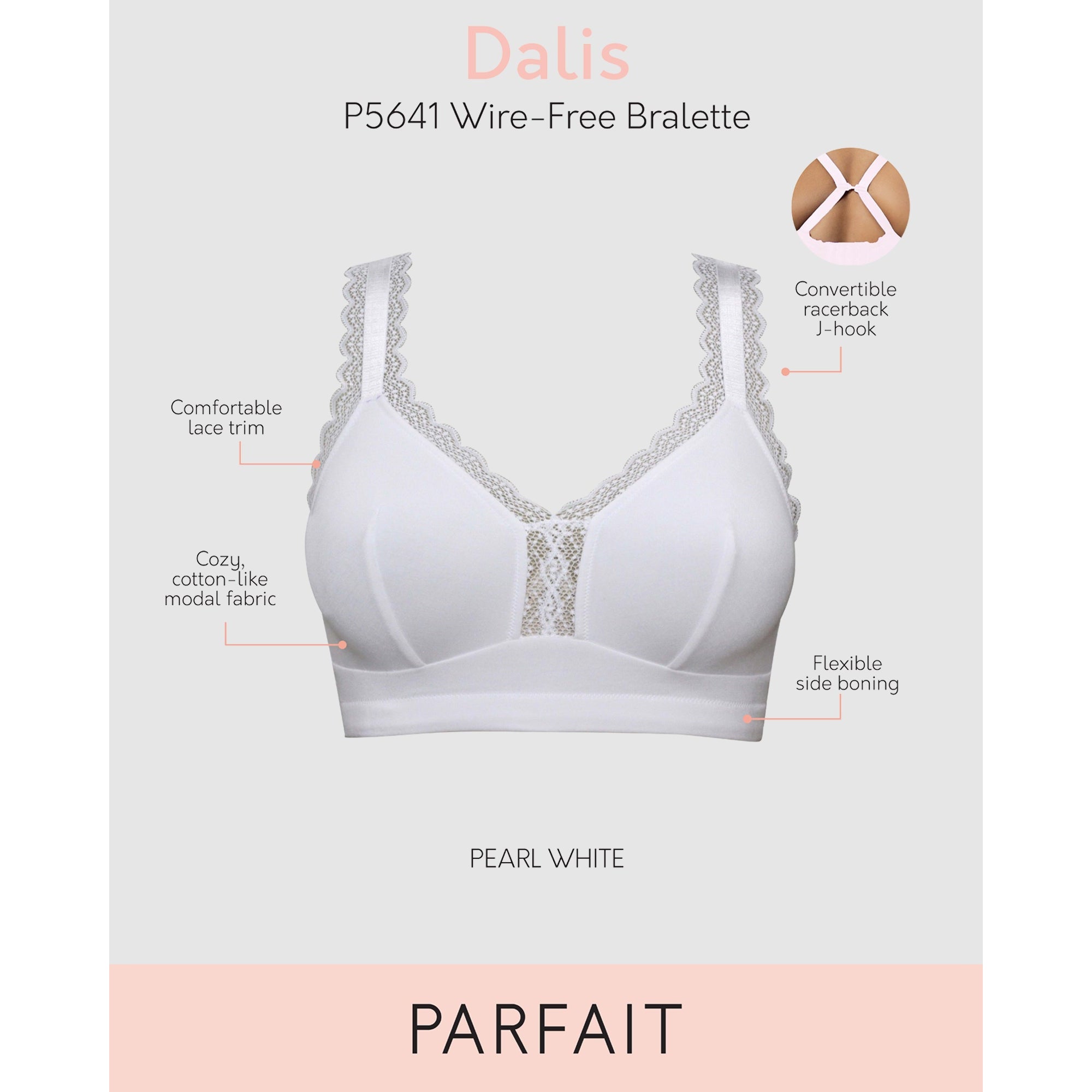 Indulge in both dreamy comfort and chic style with the Dalis Wireless Modal Bralette by Parfait. Attractively trimmed with lace and designed to offer gentle support for larger cup sizes, it is perfect both for casual lounging and as a sleep bra.
