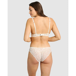 Adorn yourself with beautiful scalloped lace in this slightly-longline bra, featuring a sheer lace band and high apex cups that are lined with foam for added support and shaping. The lace has a striking leafy pattern, interrupted only by a chic cut-out detail at the centre front.
