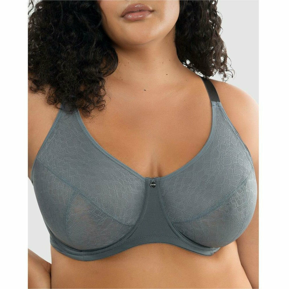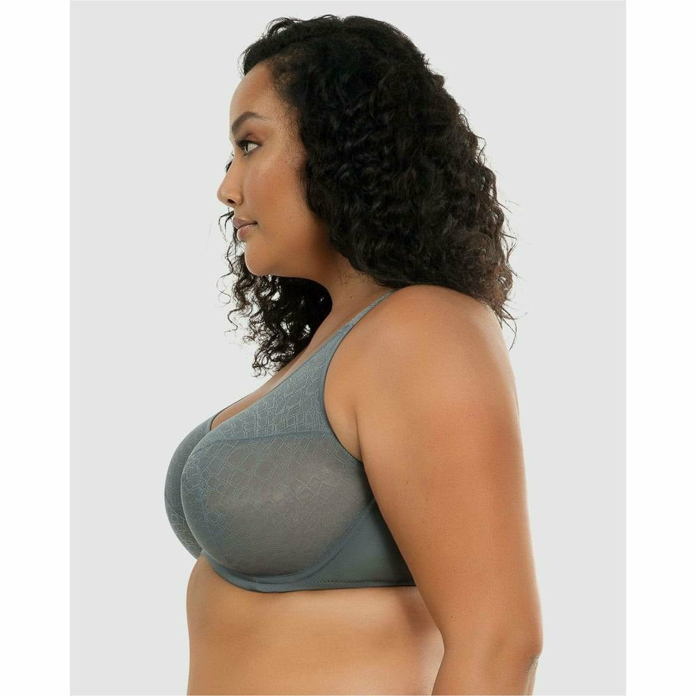 Comfortably and stylishly reduce your bust with this underwired minimiser bra, which has 3-part cups made from a semi-sheer jacquard lace. This full-bust bra offers firm support while sculpting a more streamlined silhouette, decreasing projection by 1-1.5" to help your clothes fit more smoothly and without pulling.