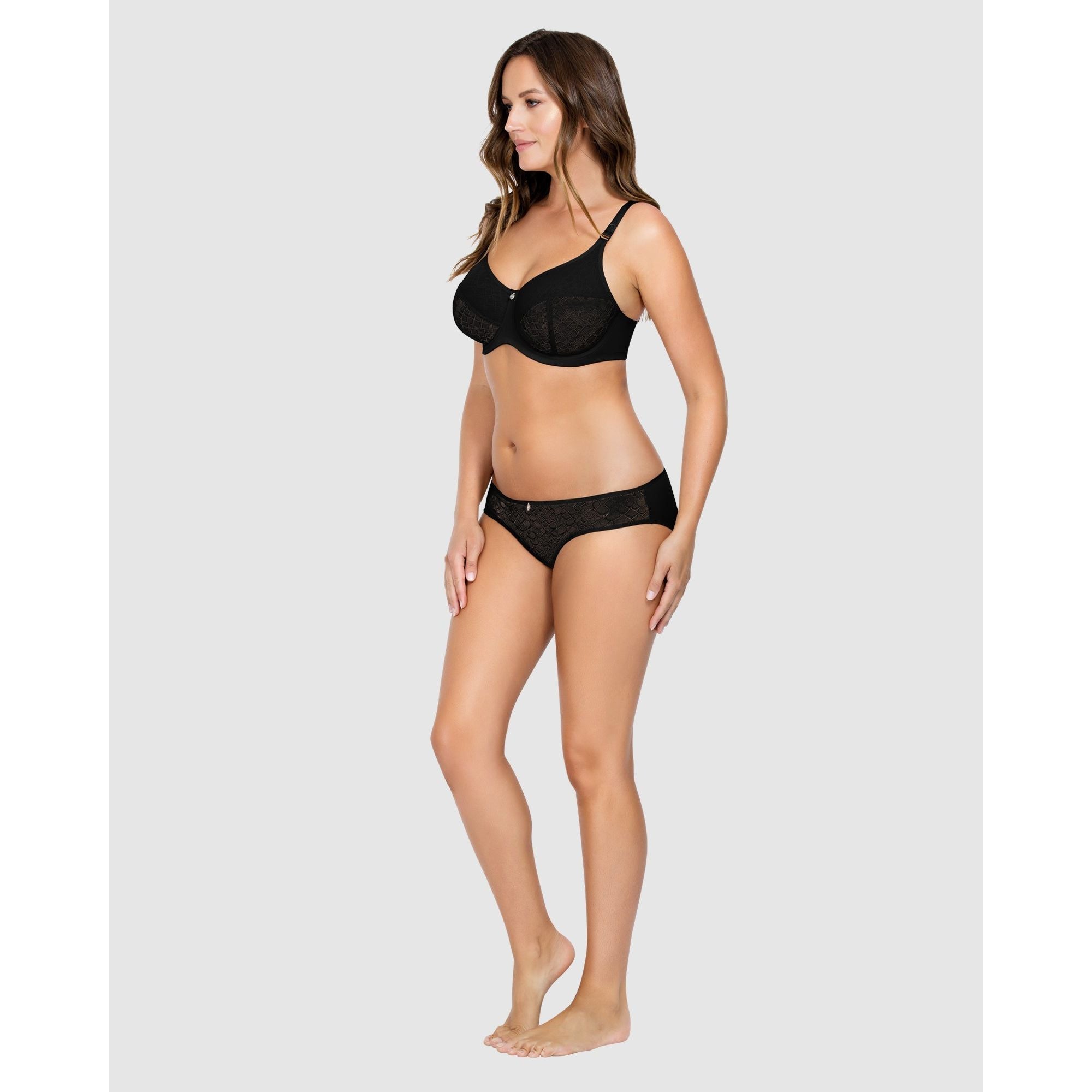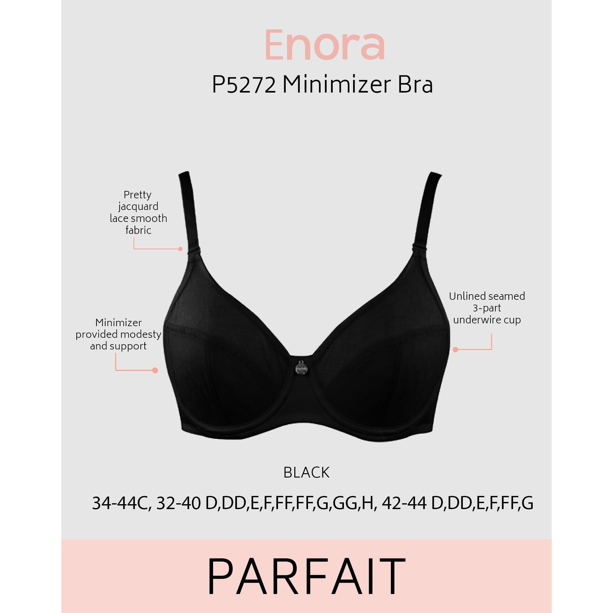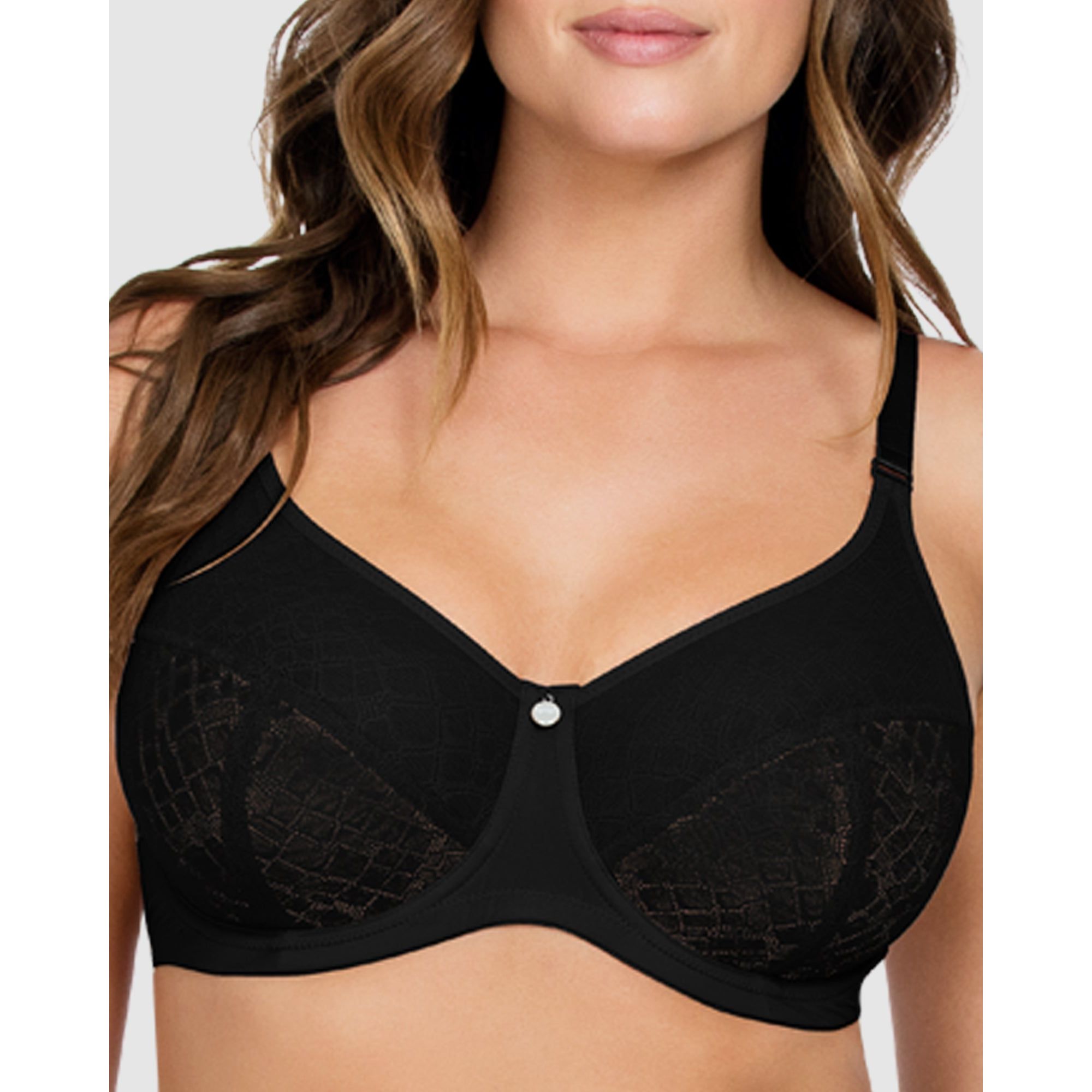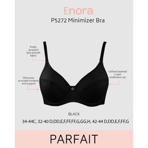 Comfortably and stylishly reduce your bust with this underwired minimiser bra, which has 3-part cups made from a semi-sheer jacquard lace. This full-bust bra offers firm support while sculpting a more streamlined silhouette, decreasing projection by 1-1.5" to help your clothes fit more smoothly and without pulling.
