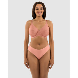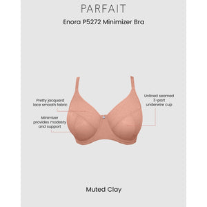Comfortably and stylishly reduce your bust with this underwired minimiser bra, which has 3-part cups made from a semi-sheer jacquard lace. This full-bust bra offers firm support while sculpting a more streamlined silhouette, decreasing projection by 1-1.5" to help your clothes fit more smoothly and without pulling.