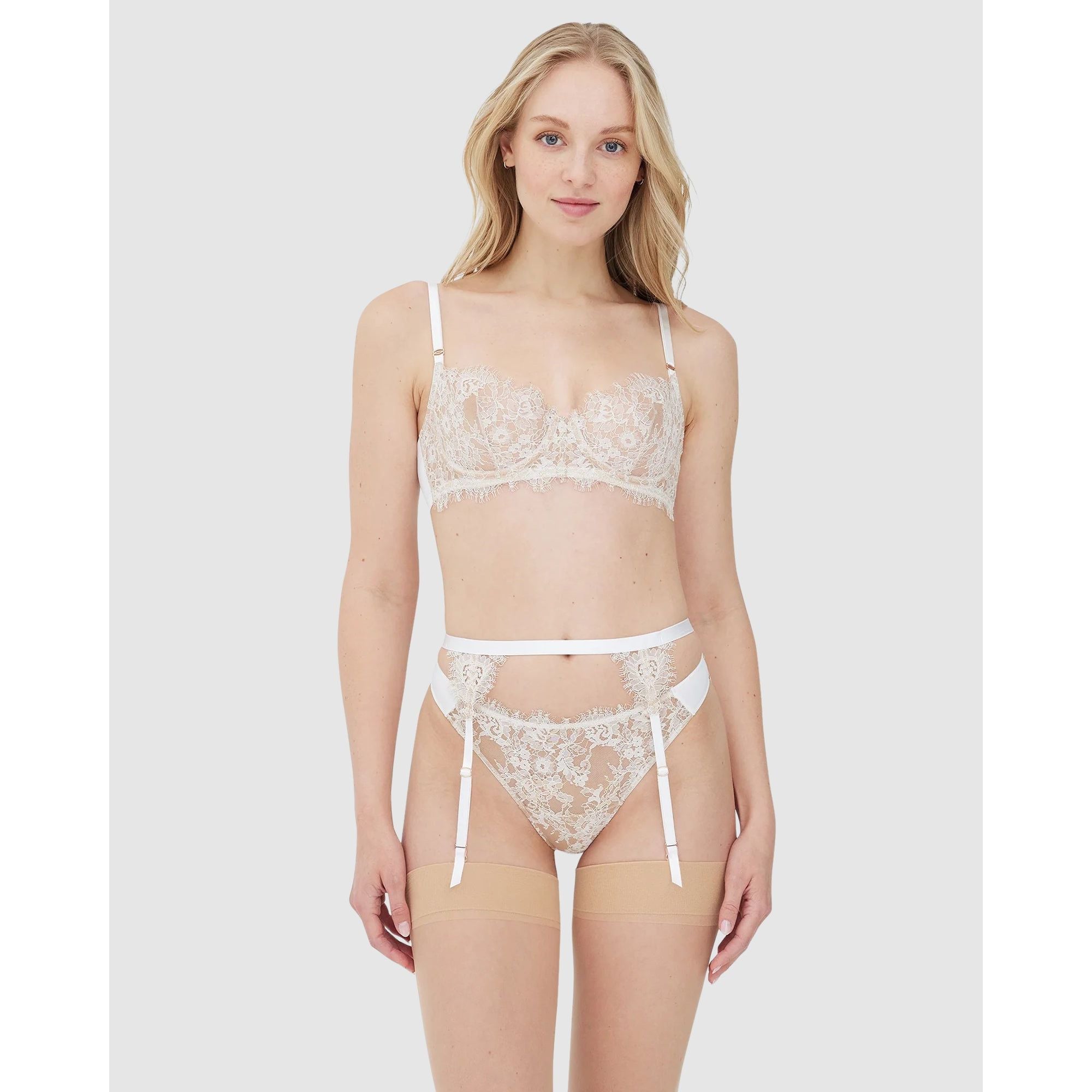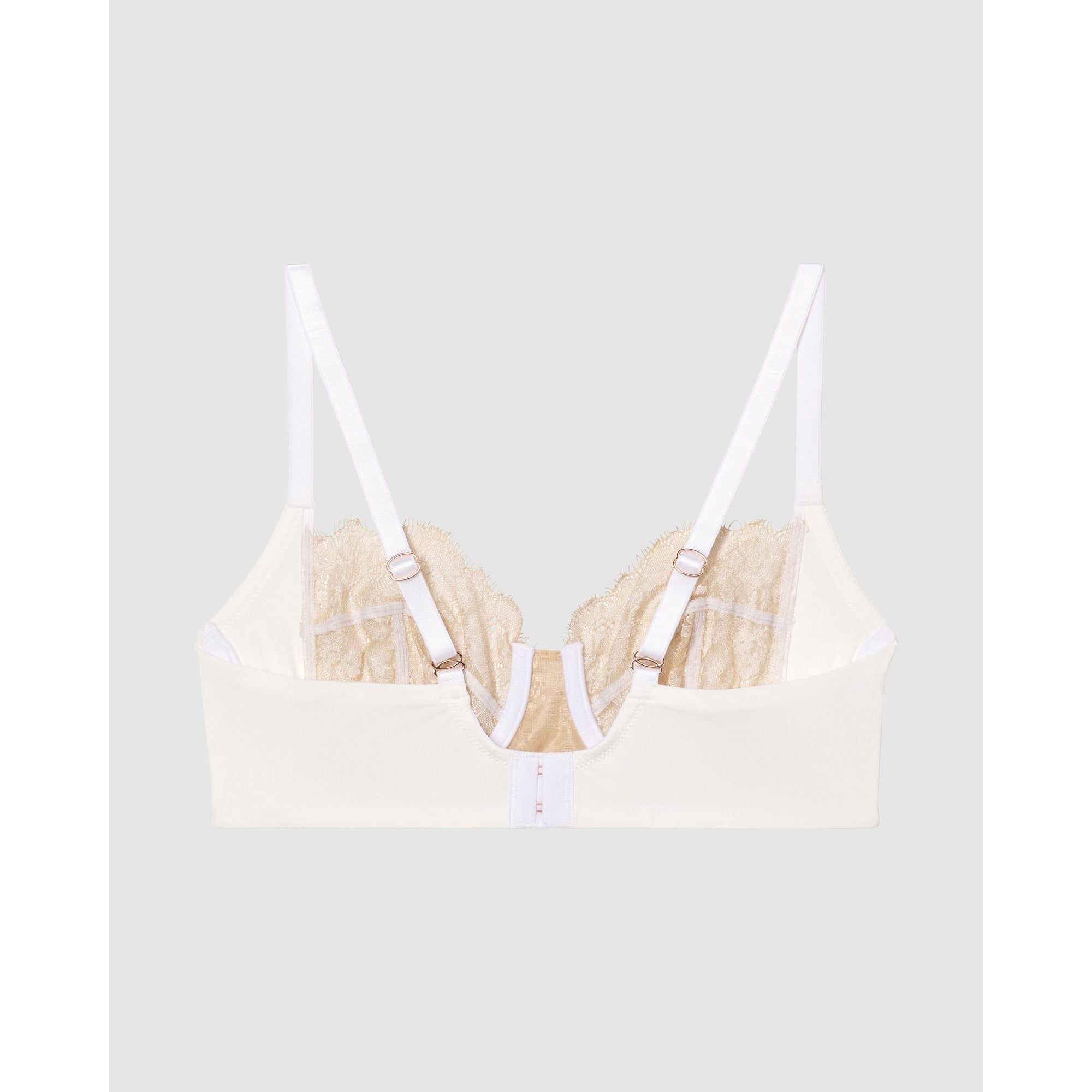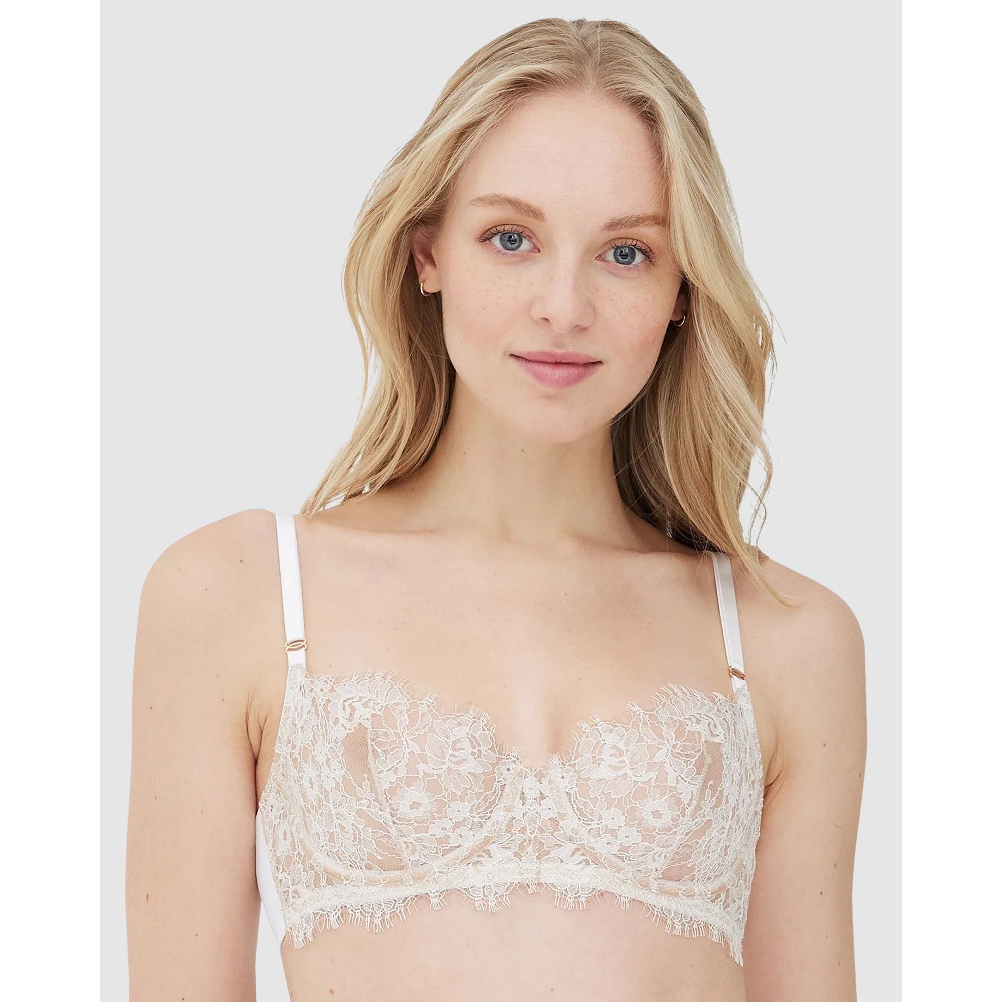 A sexy lace bra with a breath-taking look, this sheer lace balconette is sure to be a favourite in your lingerie drawer! The unlined, cotton-blend lace features a scalloped eyelash edge, and the straps are front-adjustable so you get maximum visual impact from the luxurious gold-tone hardware!
