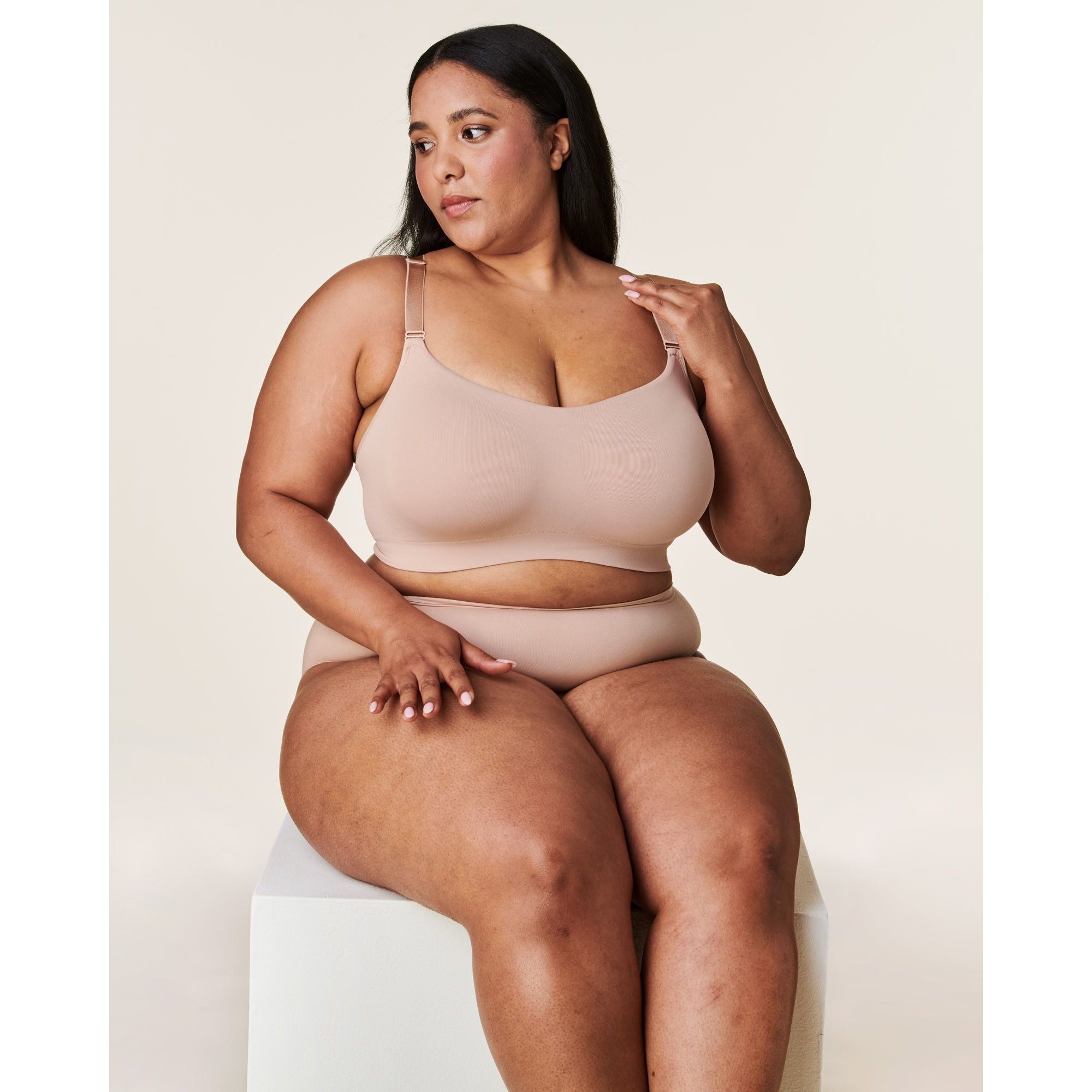 With its flattering sweetheart neckline, luxurious 360° stretch fabric (made with recycled nylon), U-shaped interior support sling, and knit-in targeted support zones, this seamless, wirefree balconette bra is engineered to lift from below the breast to create a shapely silhouette without discomfort. The removable, perforated cup inserts are breathable and allow you to control just how much of a smooth, rounded look you'd like this moulded wirefree bra to have.