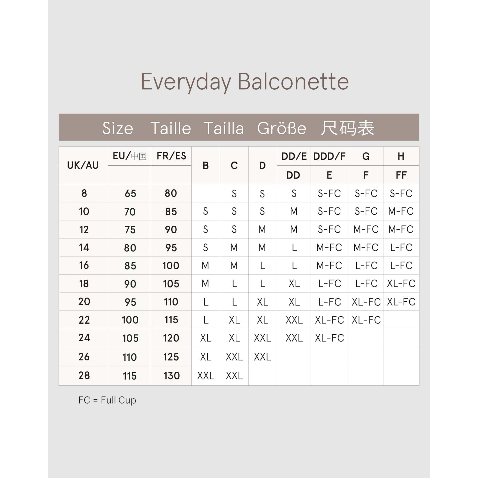 Full Cup sizes have wider straps & an extra row of hook-and-eyes