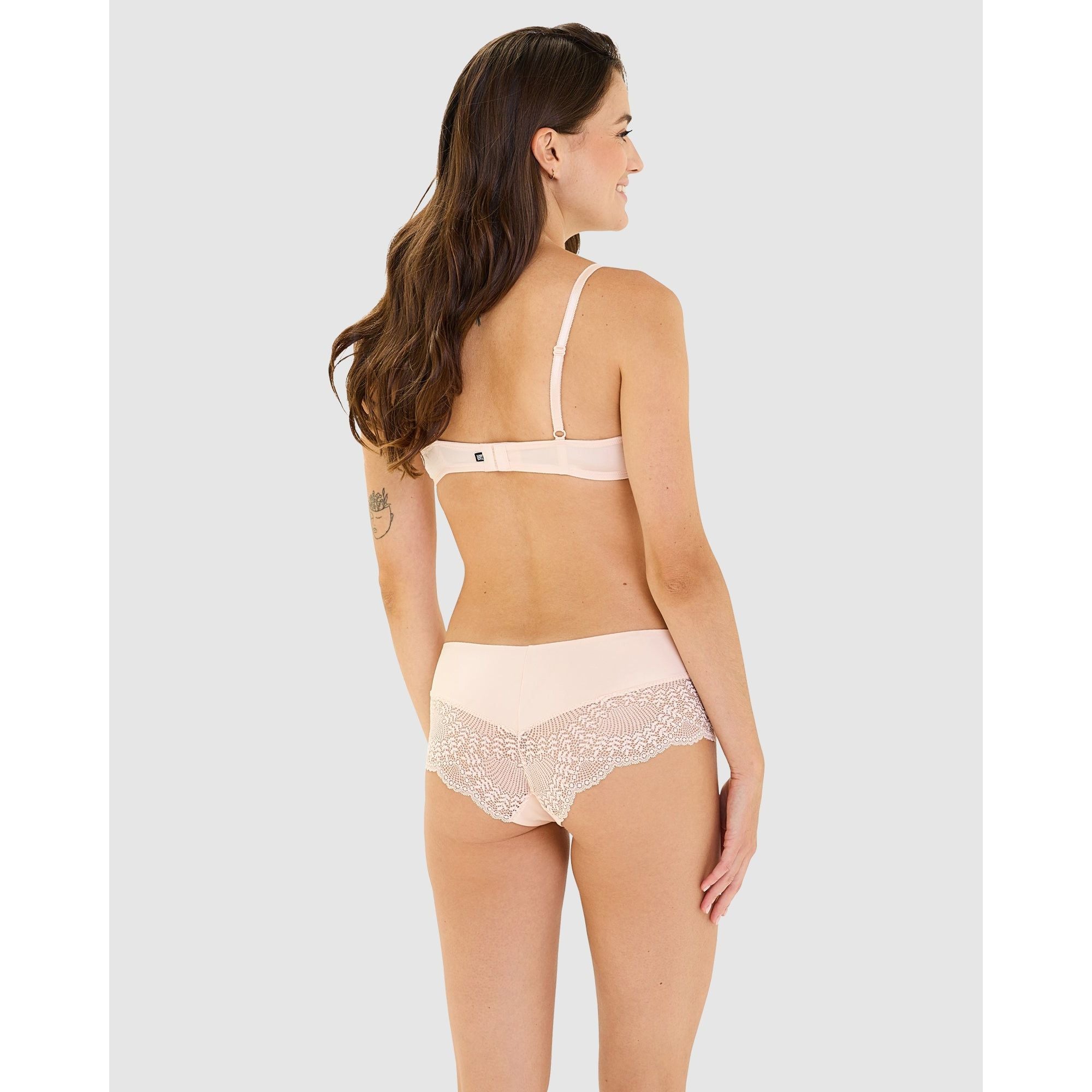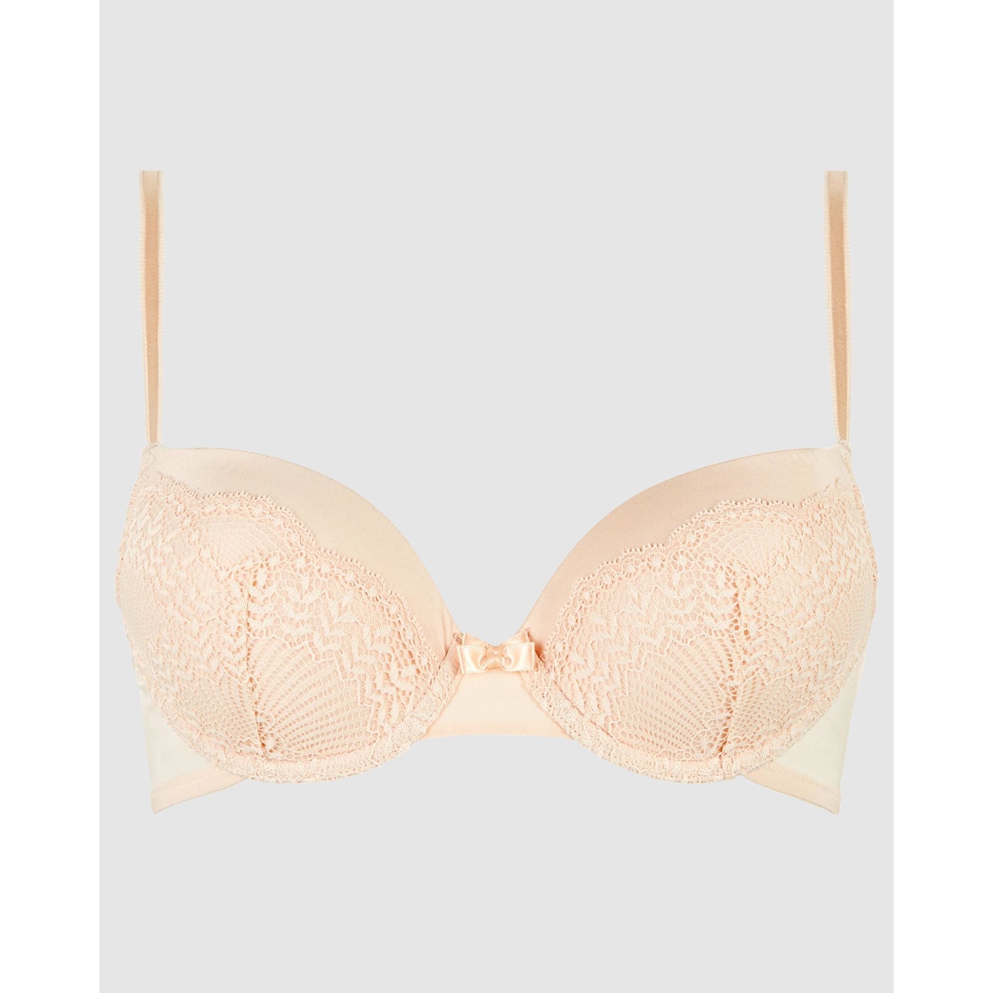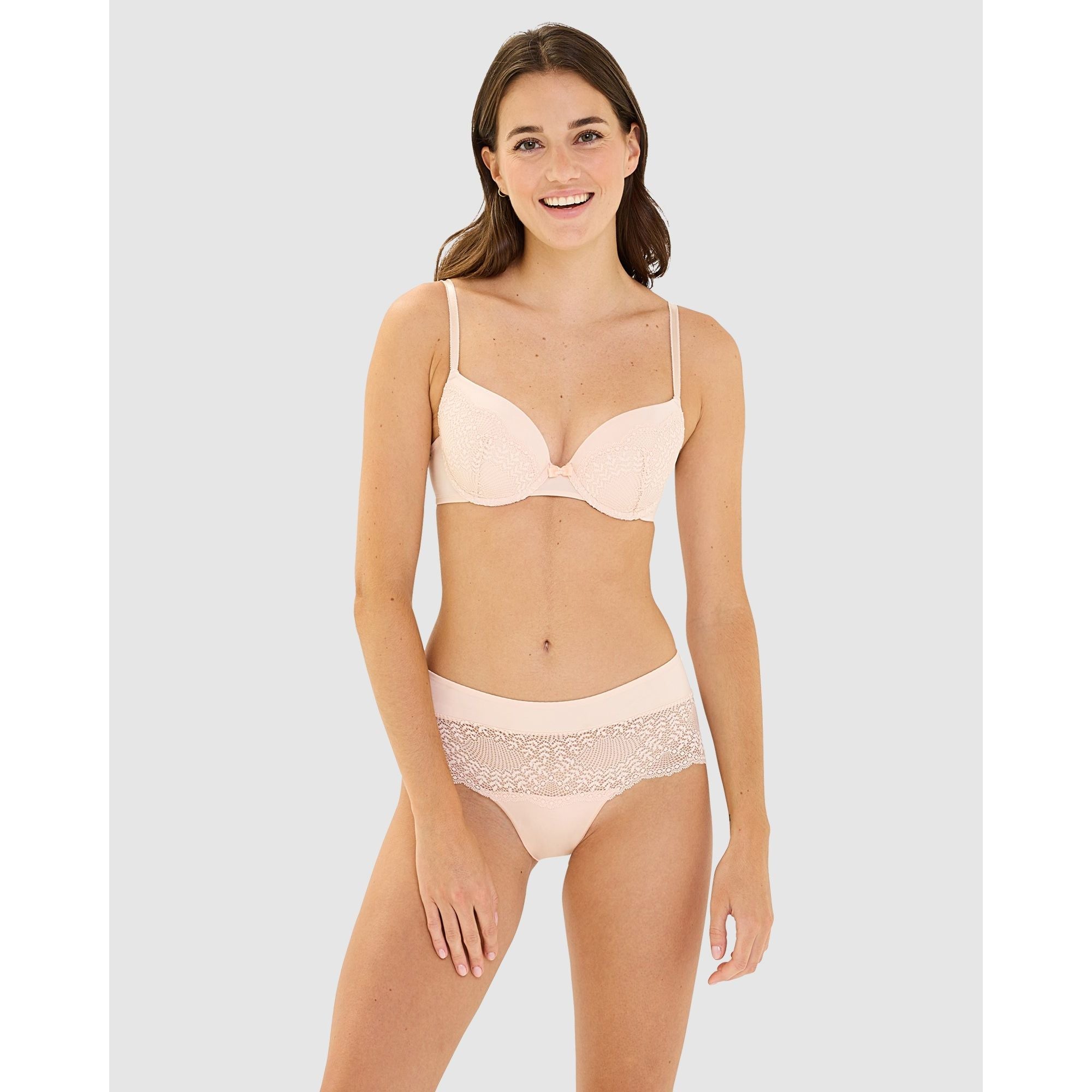 A versatile everyday bra that delivers on comfort, shaping and support without sacrificing feminine style, this demi cup bra has lightly padded cups overlaid with delicate lace. It's finished with a pretty bow detail at the centre front, plus adjustable satin-finish straps.