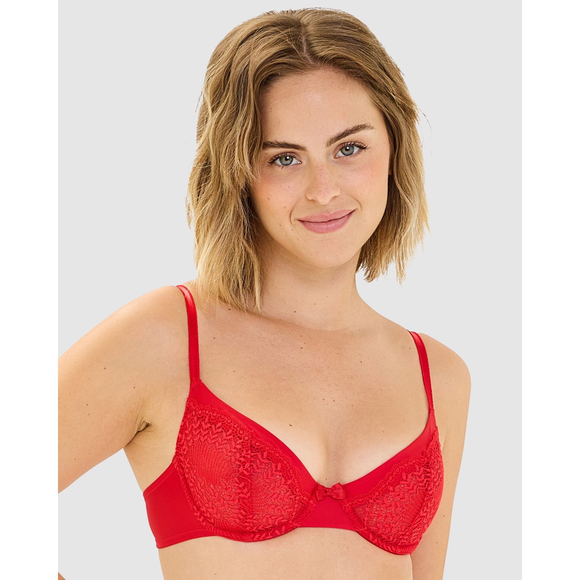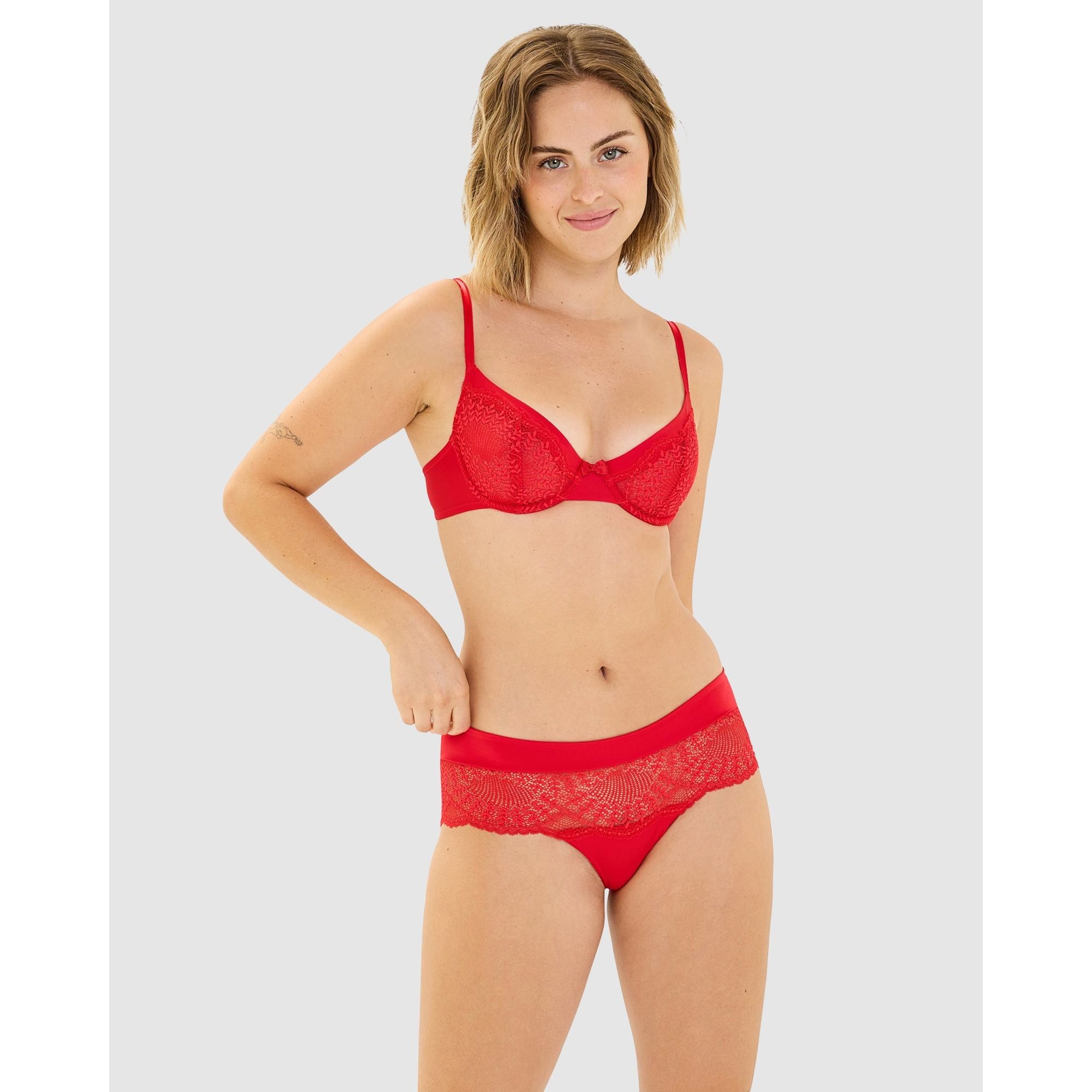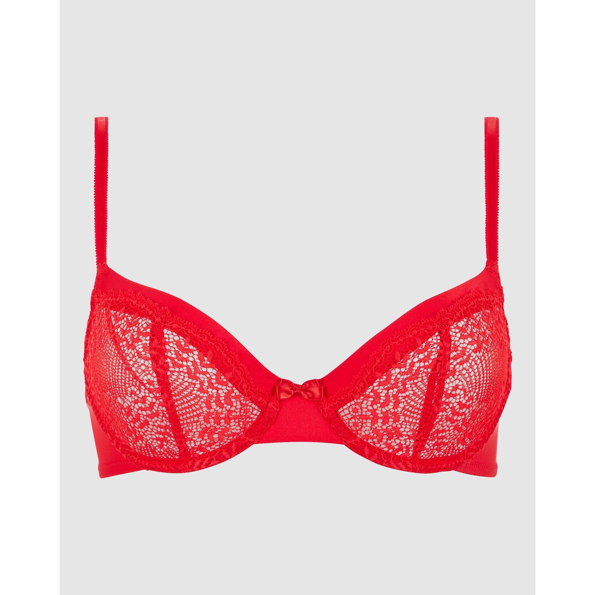 Get comfortable support, subtle lift and classic French-designed femininity with this underwired demi bra, crafted from sheer lace with an opaque trim along the neckline. Made with soft microfibre, it's finished with adjustable straps and a pretty bow between the cups.