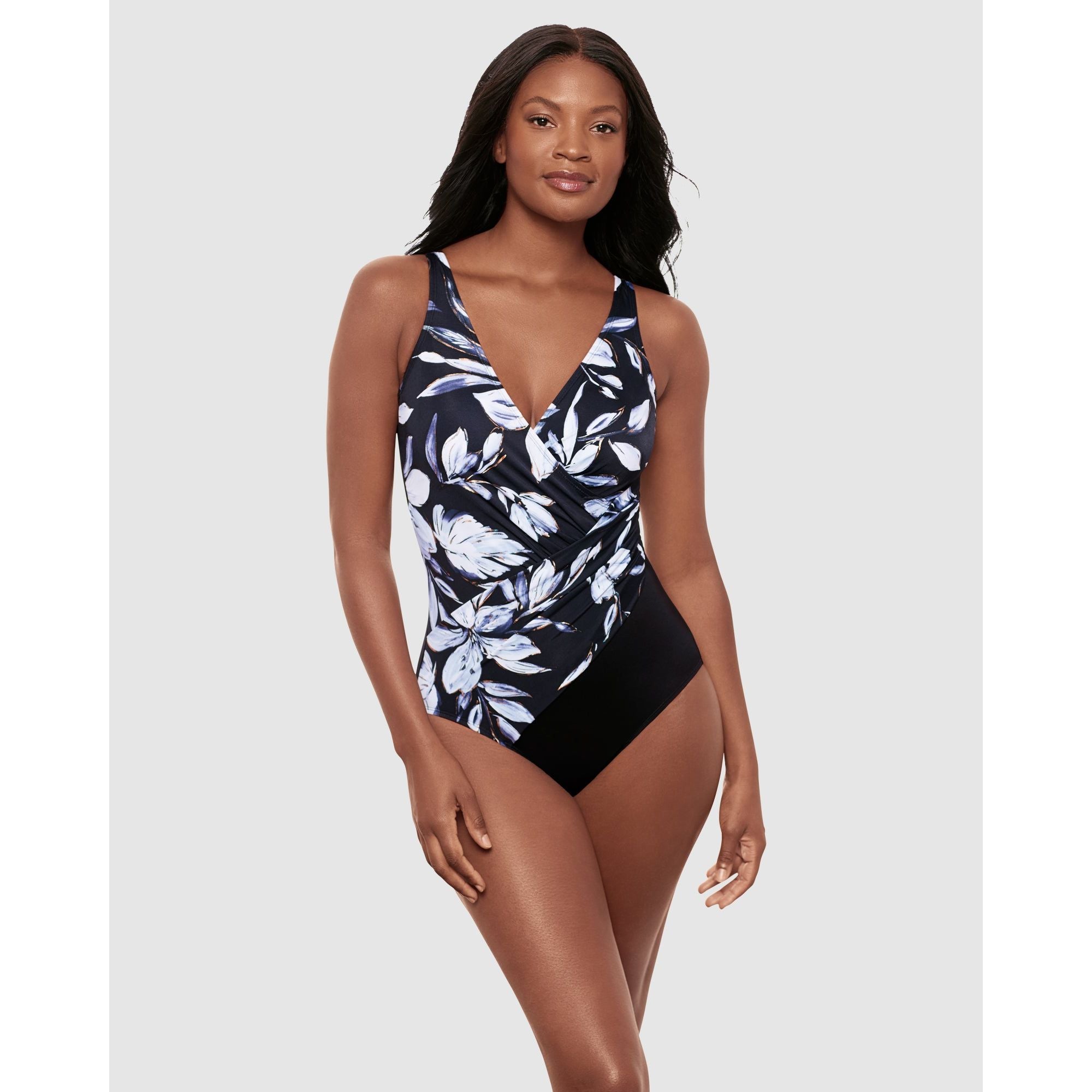 Look and feel incredible in this one piece swimsuit with built-in shaping, which has been designed especially to fit and flatter a fuller figure. The secret to this tummy control swimsuit is its advanced Miratex® fabric, which delivers 3x the shaping power of regular swimsuit fabric while feeling every bit as a lightweight and comfortable. It's a wirefree, V neck swimsuit with a wrapover design while helps to define your waistline.