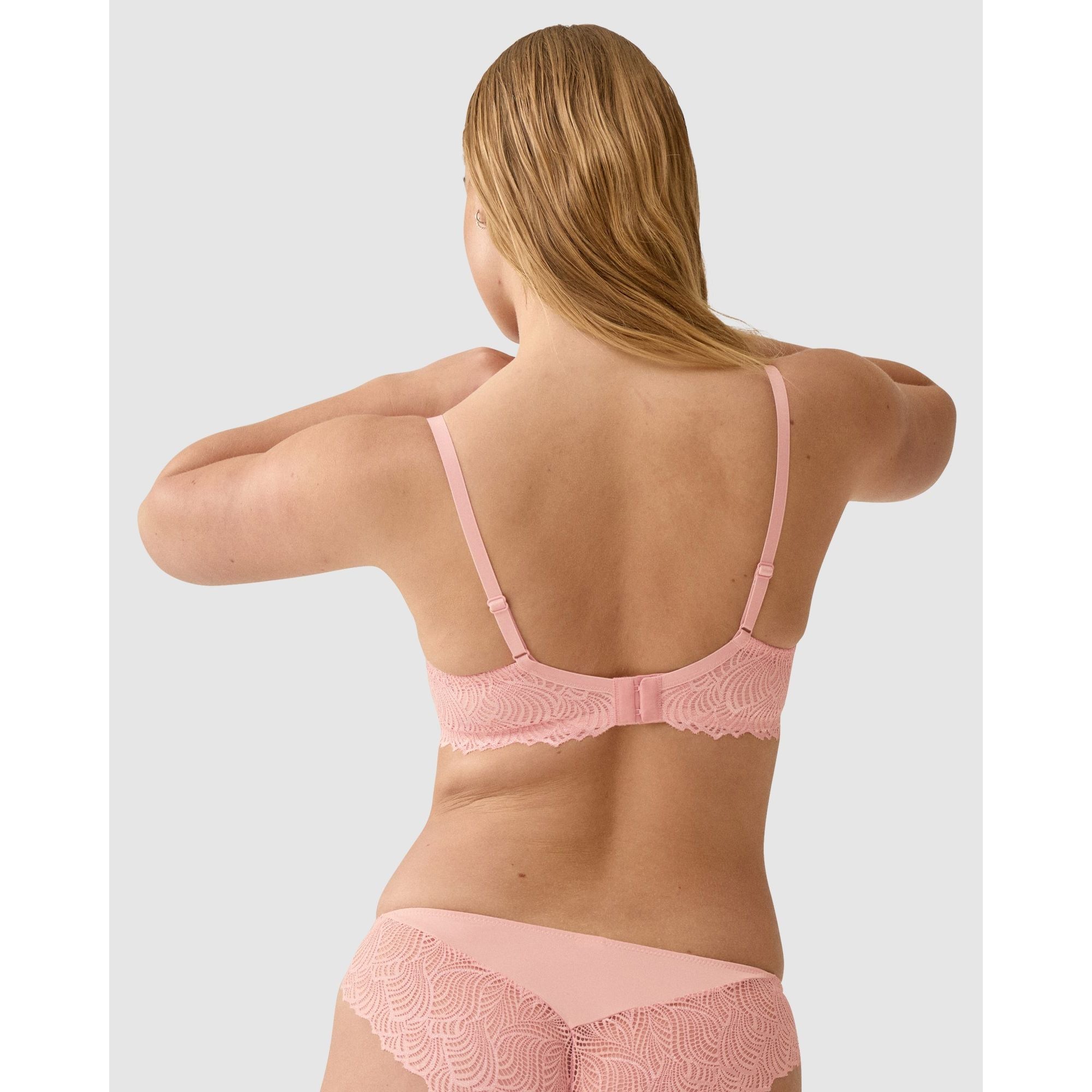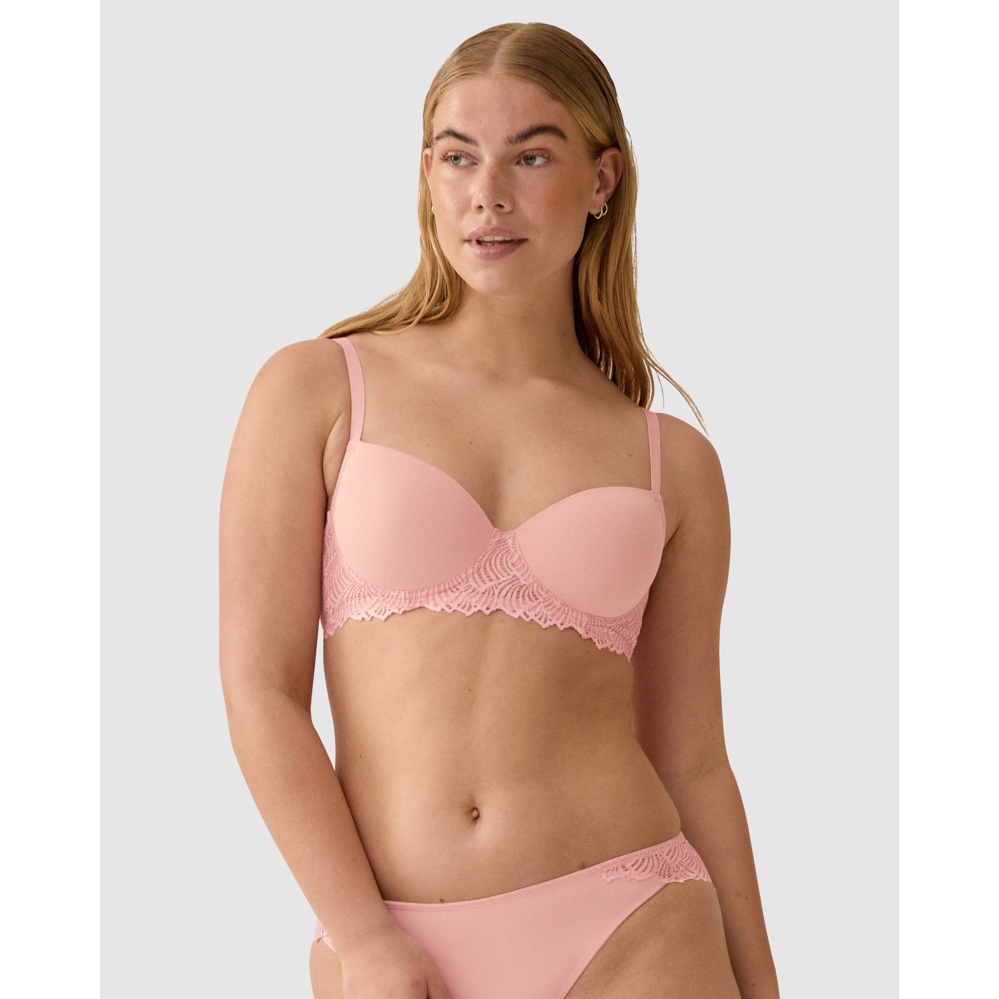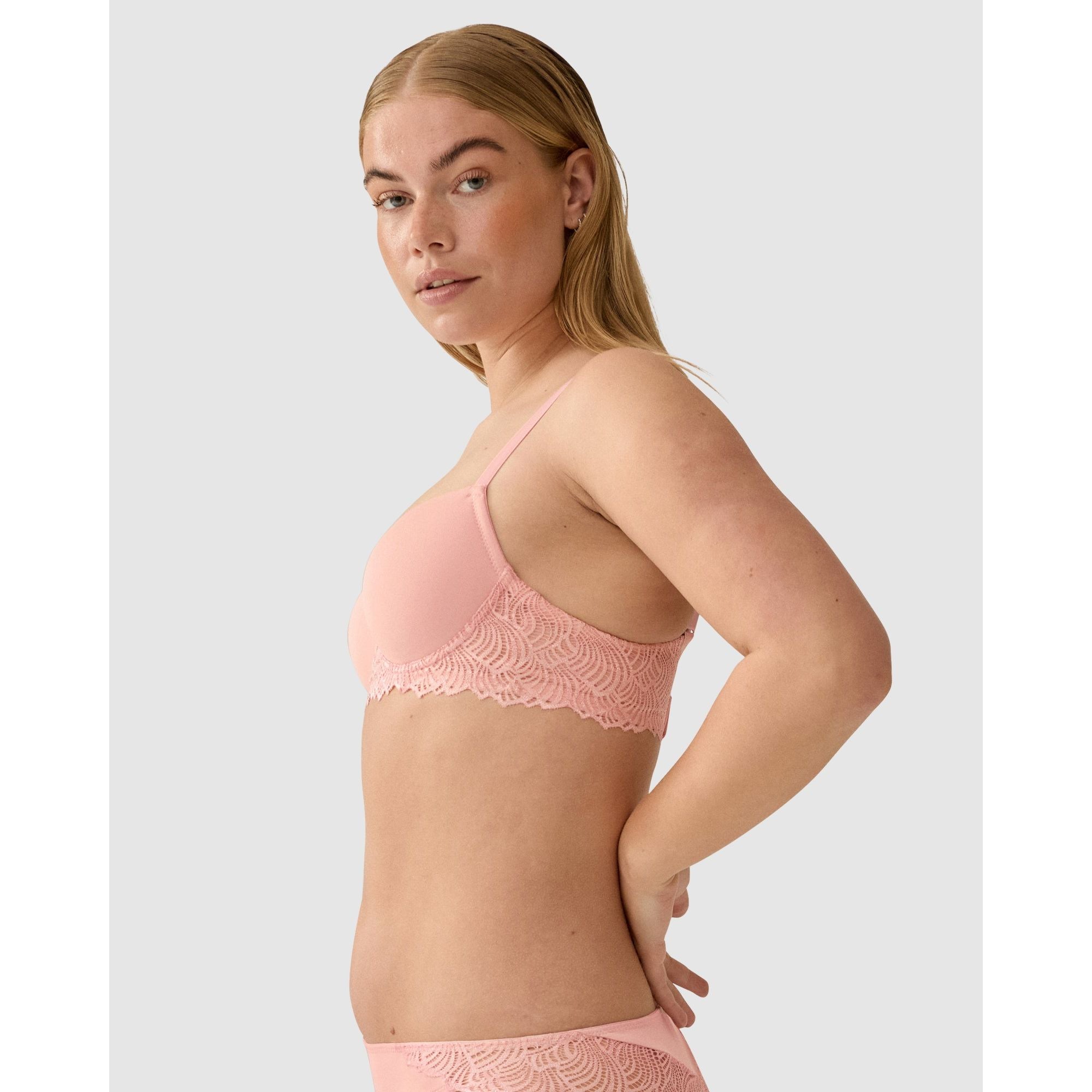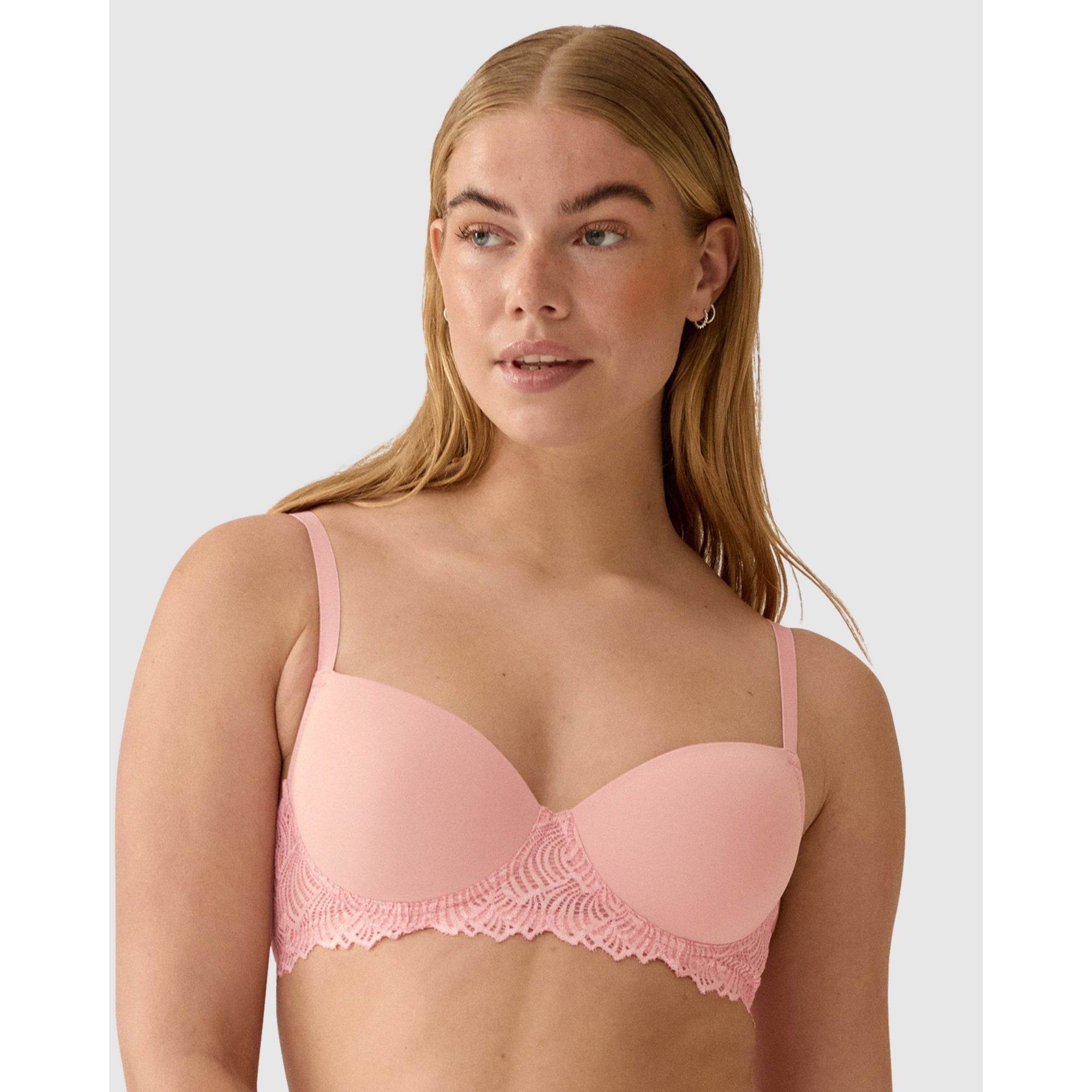 The everyday t-shirt bra just got a lacy upgrade: this practical yet pretty balconette bra combines seamless, lightly-moulded cups (which create a smooth silhouette under your clothing) with a band made from gently shimmering, GRS-certified lace. A reinforced back ensures optimum support, while the half cup shape lifts your bust and creates a natural-looking cleavage.