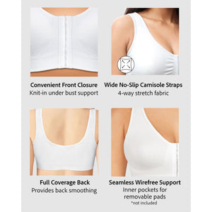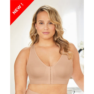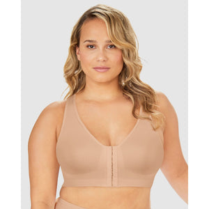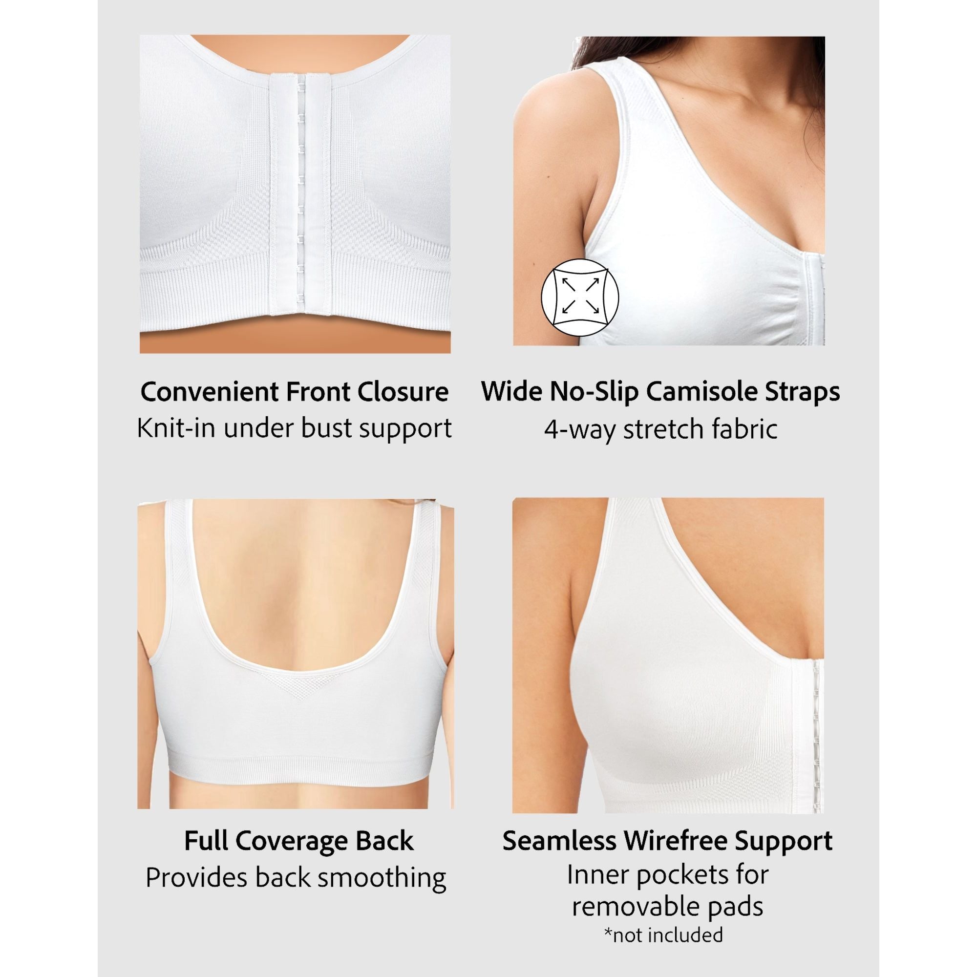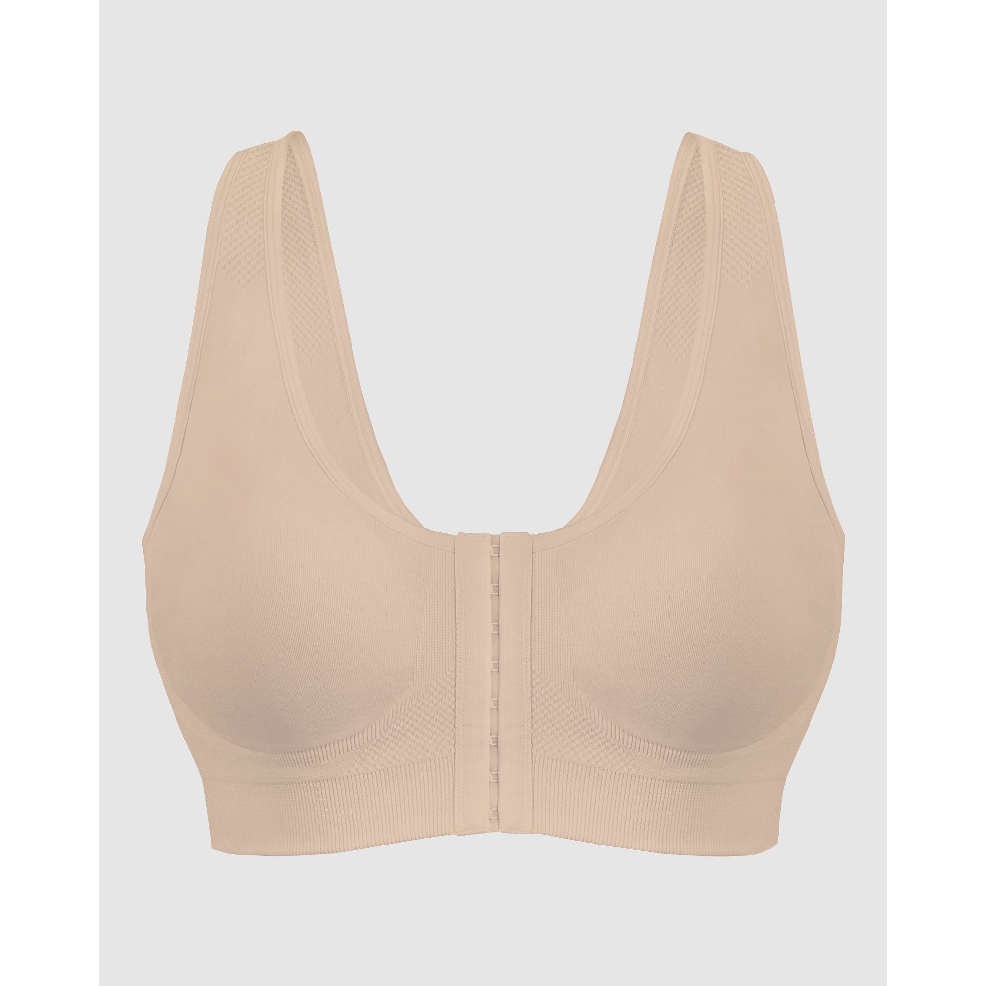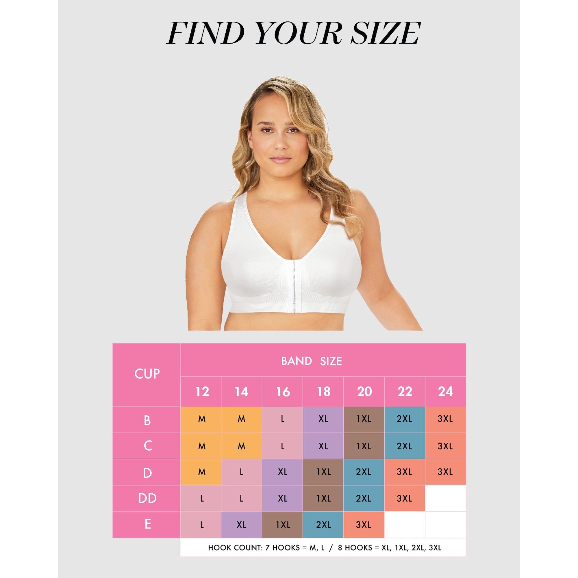 Get all the support you need and all the comfort you crave in this wirefree front open bra, which is made from a silky-smooth fabric with 4-way stretch for unrestricted movement and a flawless fit. A wide band, knit-in underbust support and tall, smoothing back deliver optimum support, while the front hook-and-eye closure makes this plus size bra incredibly easy to get on and off. So comfy, you can sleep in it!