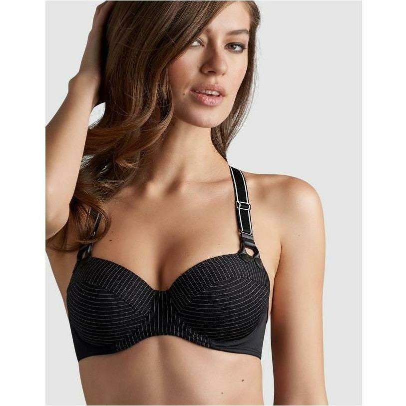 Inspired by the first female gangster film and all things feminist, the Gloria Padded Balcony Bra by Marlies Dekkers brings suit-style tailoring to your lingerie drawer. The underwired, padded cups are made from pinstripe fabric, and the straps are styled to look like old-fashioned suspenders.