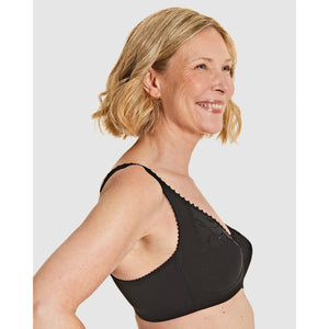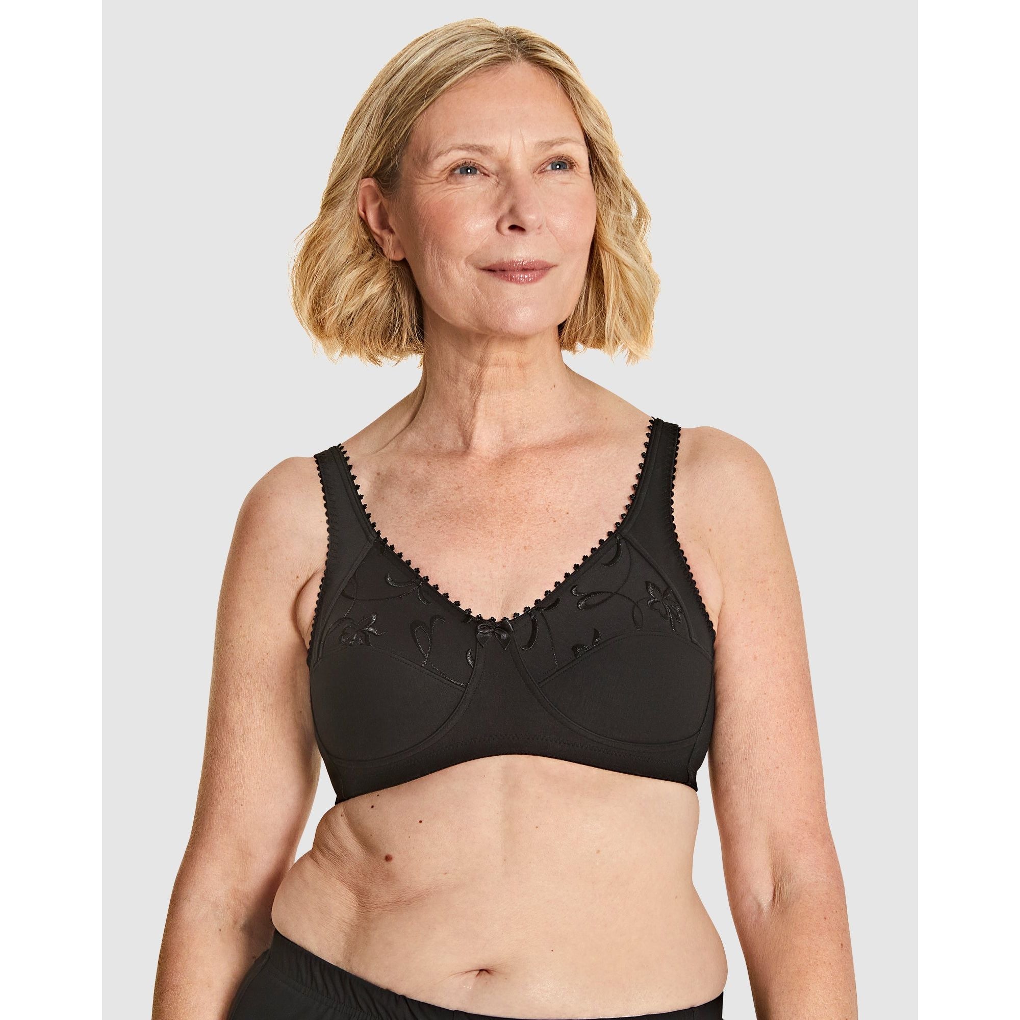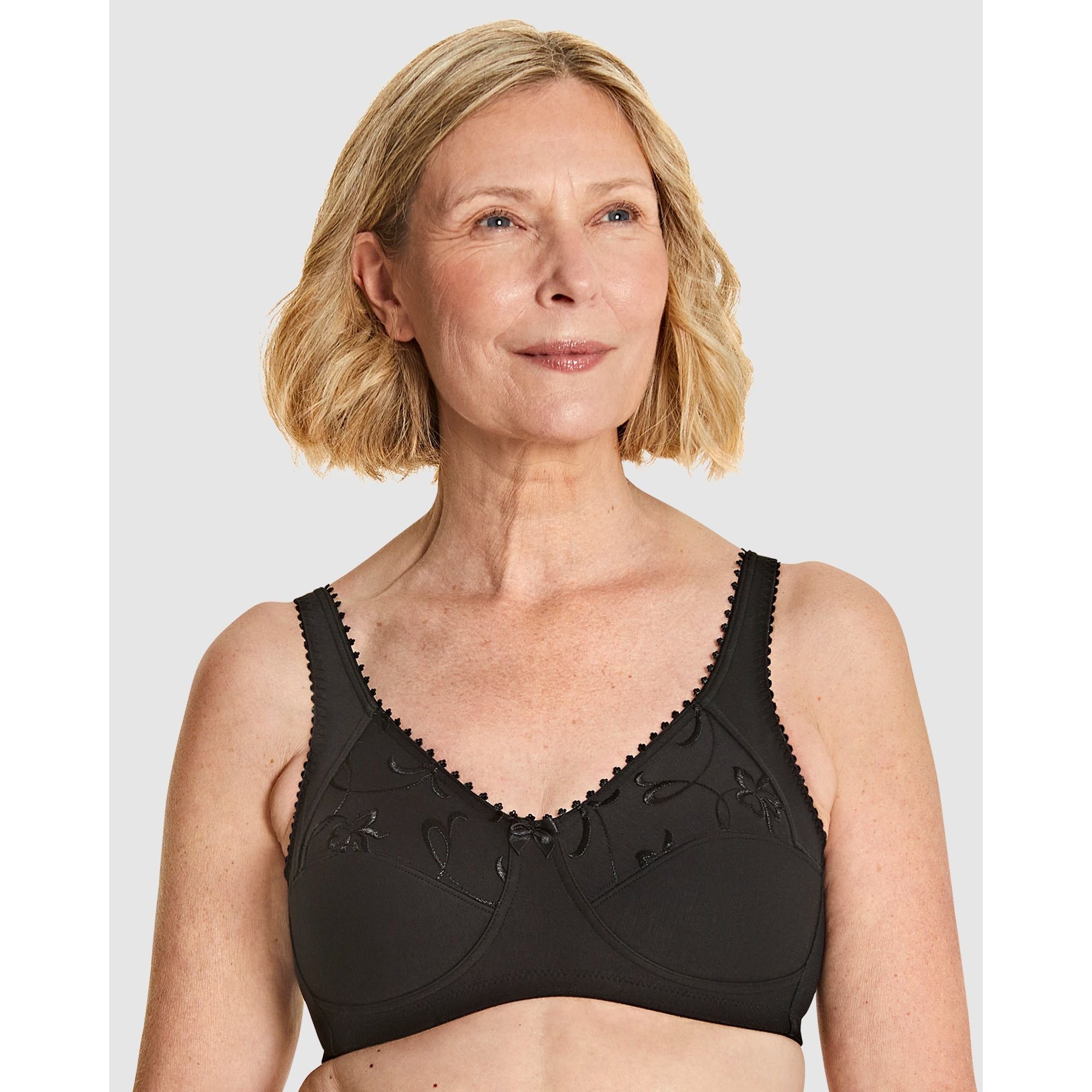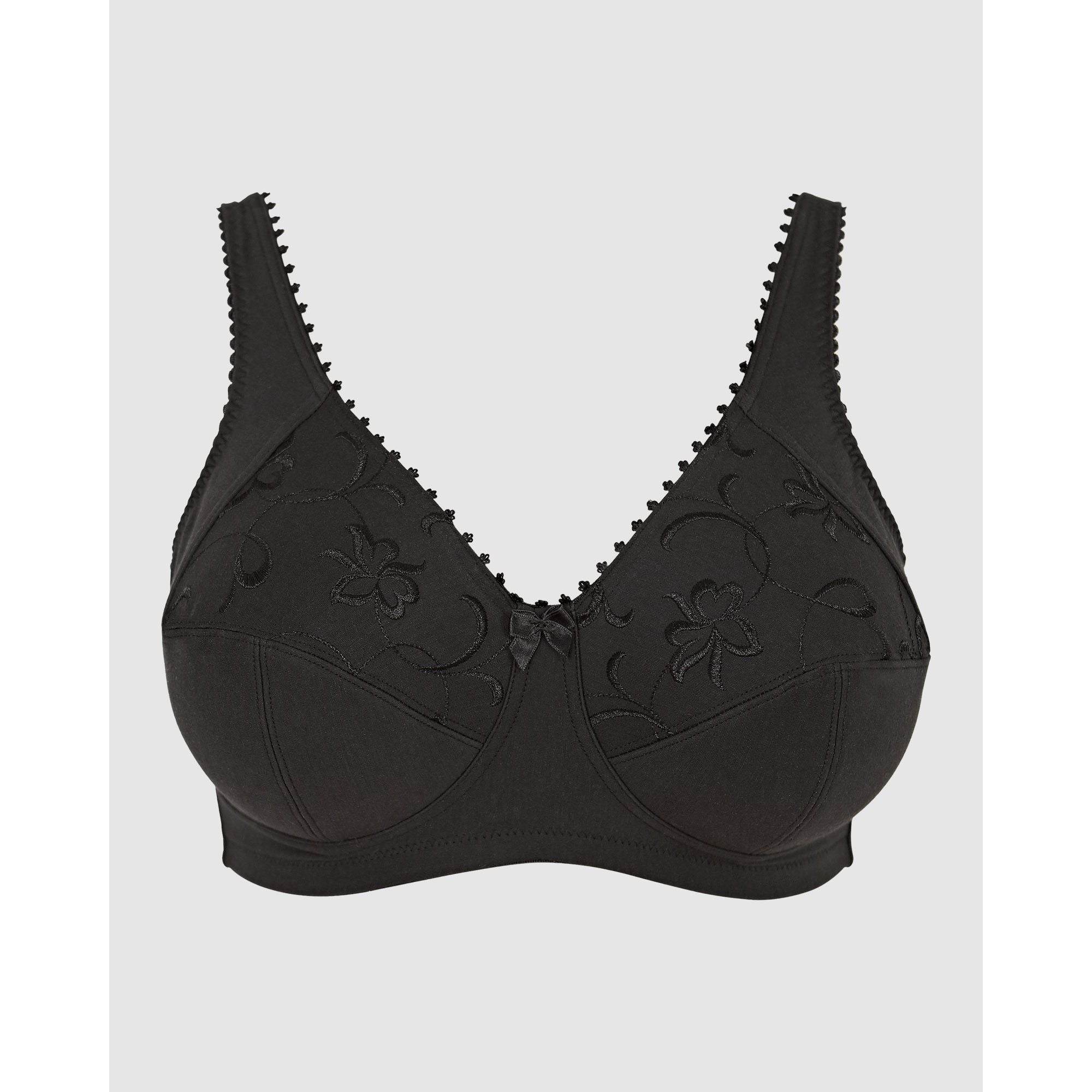 For comfortable, secure support without underwiring, you'll love this full cup bra which has wide straps and seamed cups with side slings to deliver fabulous lift and shaping. A primarily cotton bra, it's decorated with pretty embroidery and picot edging. Cup sizes DD-FF have a seam in the lower cup to further enhance support and shaping.