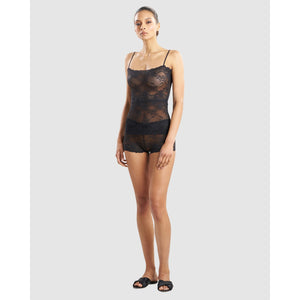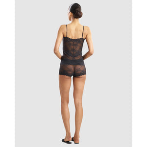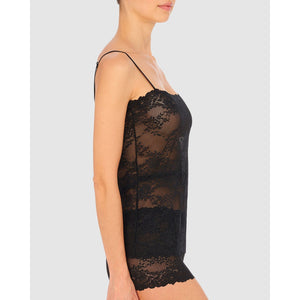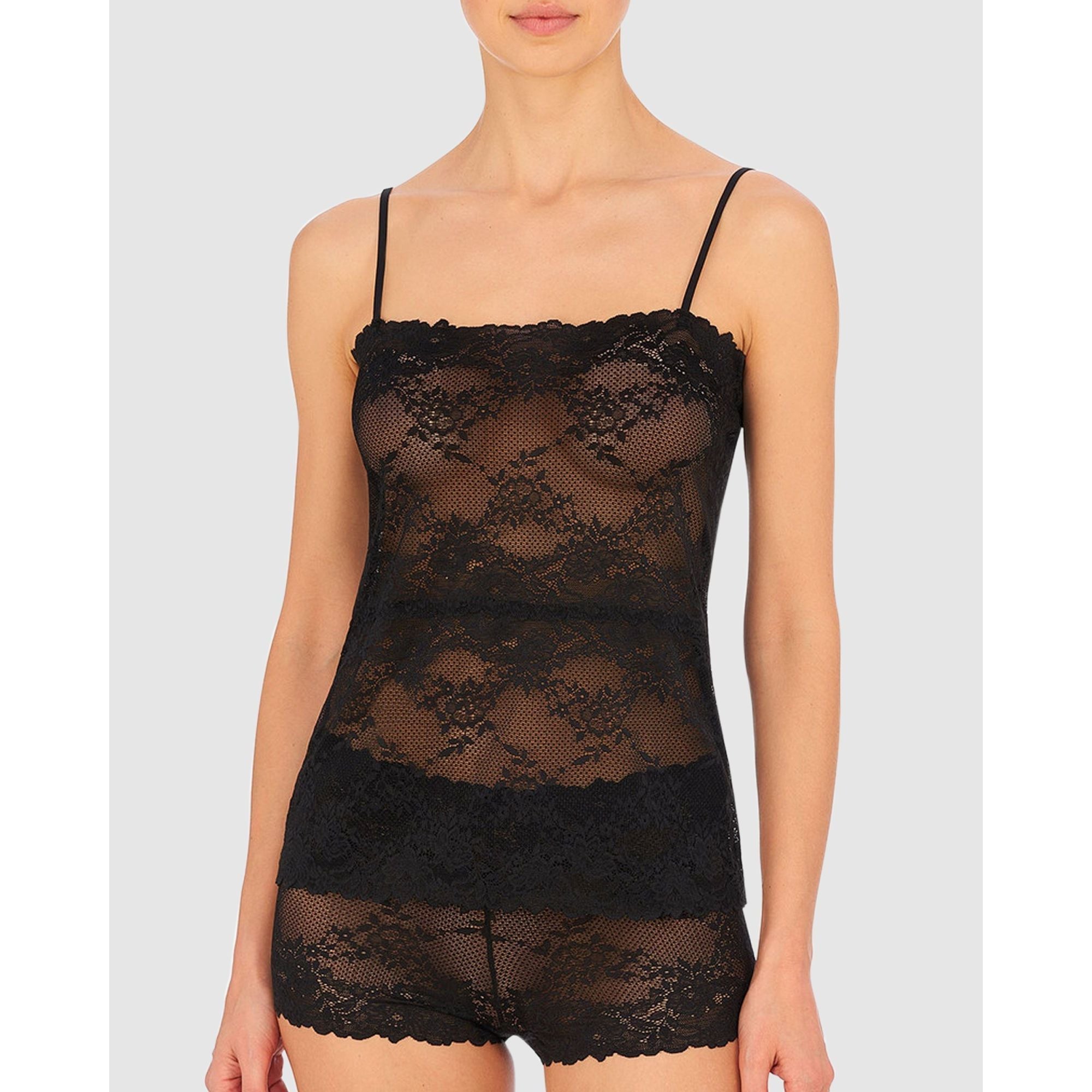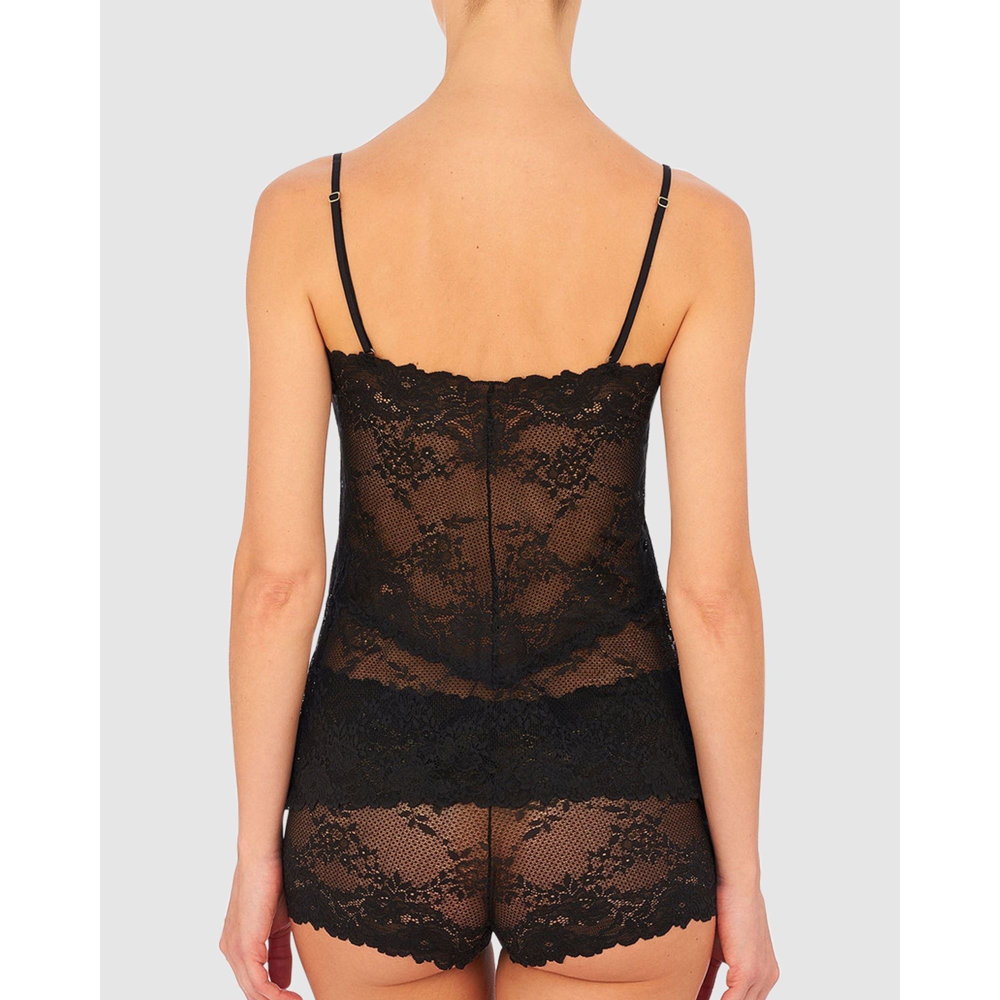 Perfect for sleeping or styling under a blouse, this delightfully-feminine thin strap camisole is made from soft stretch lace, with a waist-accenting seam that carries around into a beautiful V shape at the back. The narrow shoulder straps are adjustable via Natori's signature gold-tone hardware, ensuring a flawless fit.