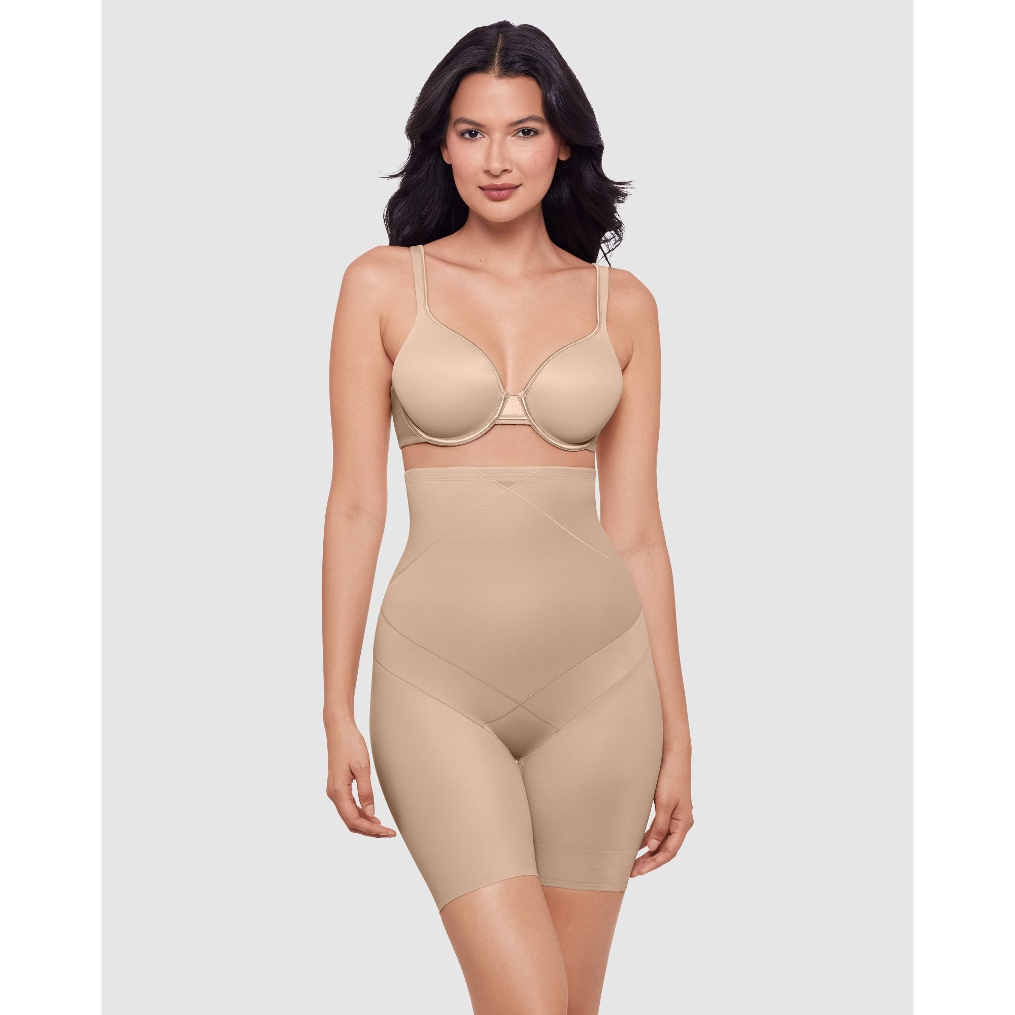 Slip into a svelte new you with the Tummy Tuck High-Waist Thigh Slimmer by Miraclesuit, which uses criss-cross panels to provide extra-firm control over your midsection. An extra-high waistband smooths out your waistline, while the long leg length comfortably shapes your thighs.