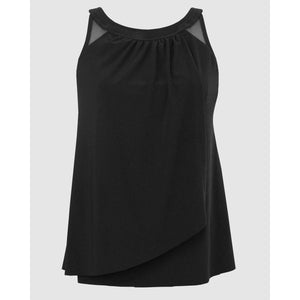 Forget about your tummy woes and simply enjoy your time at the beach in this loose fit tankini top, which completely disguises your midriff thanks to its draped and layered design. A high neckline helps to shield your skin from the sun, and hidden inside is an underwired bra to support and flatter your bust.