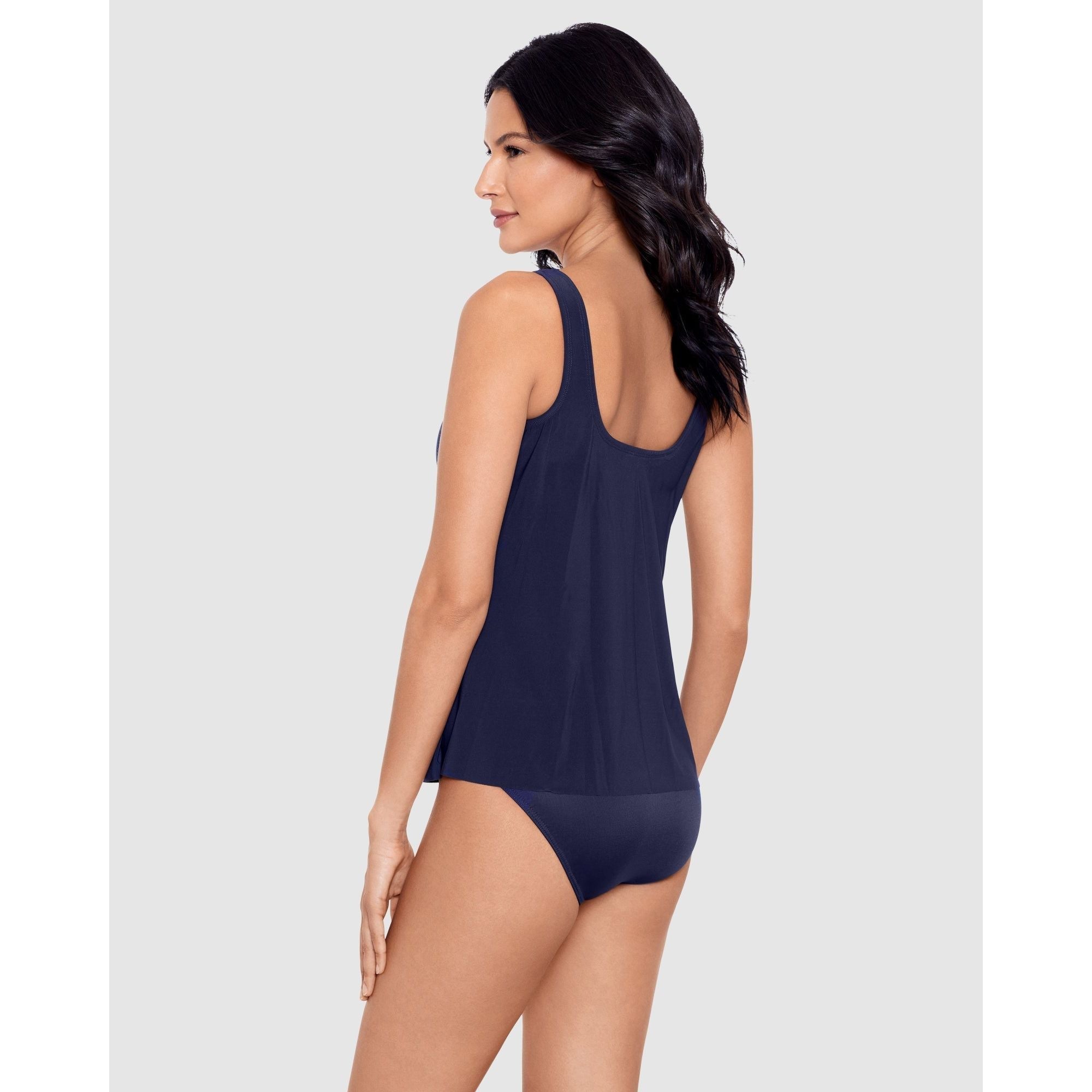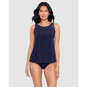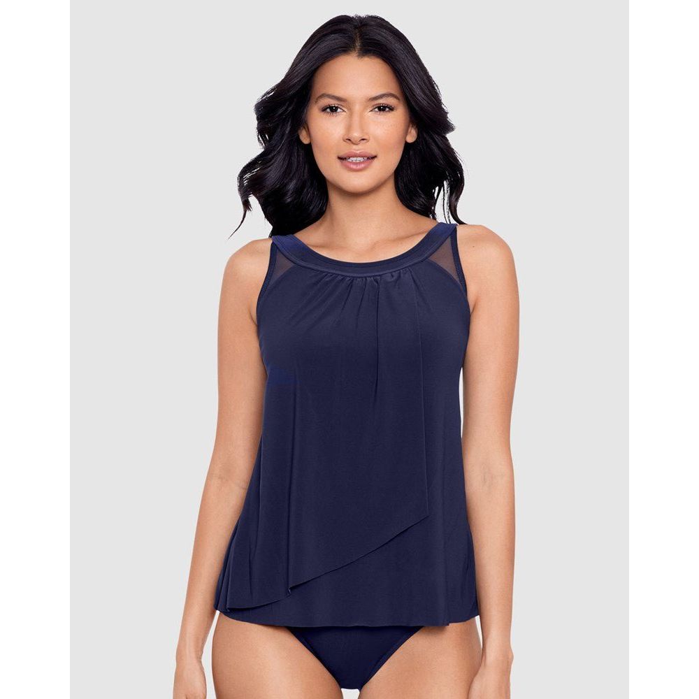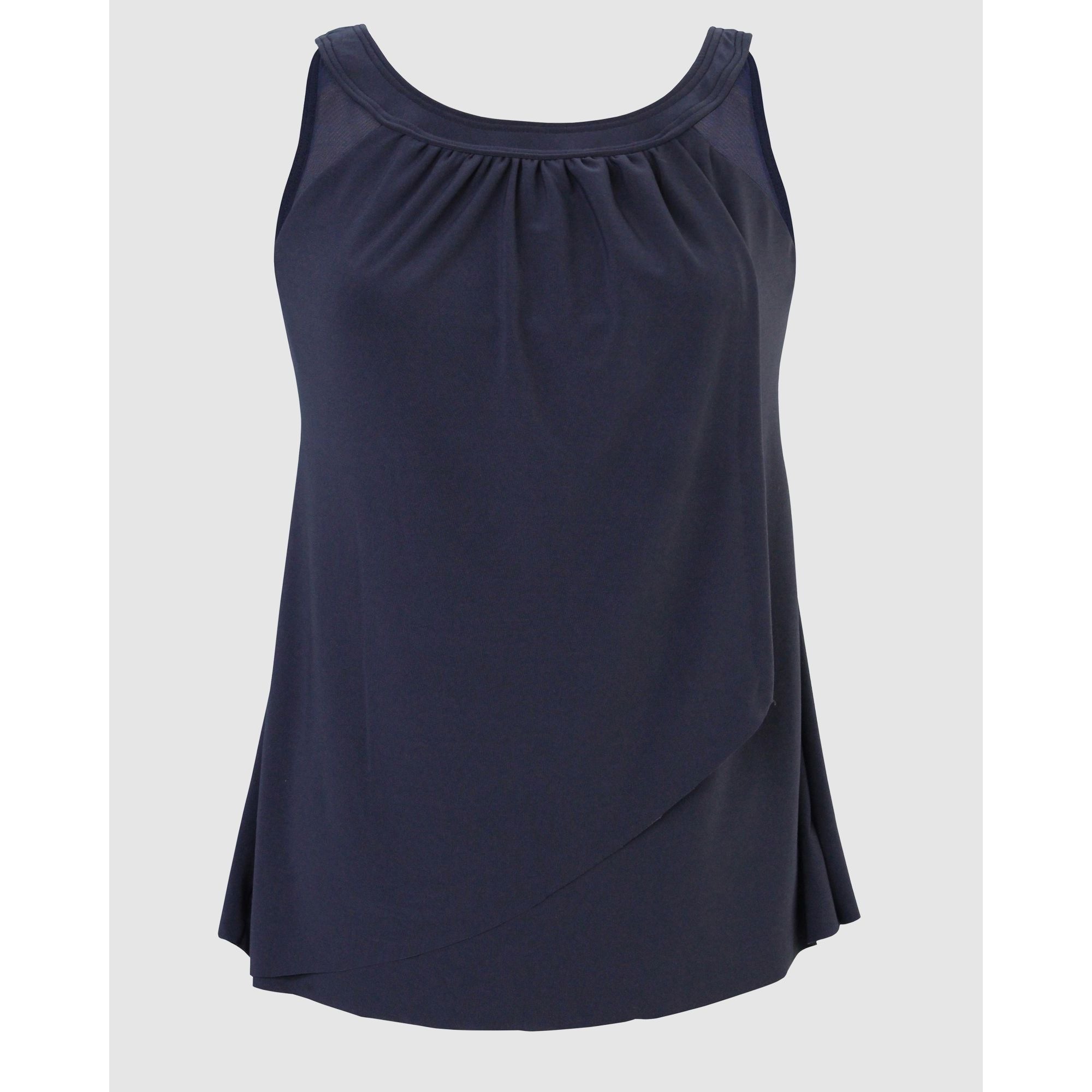 Forget about your tummy woes and simply enjoy your time at the beach in this loose fit tankini top, which completely disguises your midriff thanks to its draped and layered design. A high neckline helps to shield your skin from the sun, and hidden inside is an underwired bra to support and flatter your bust.