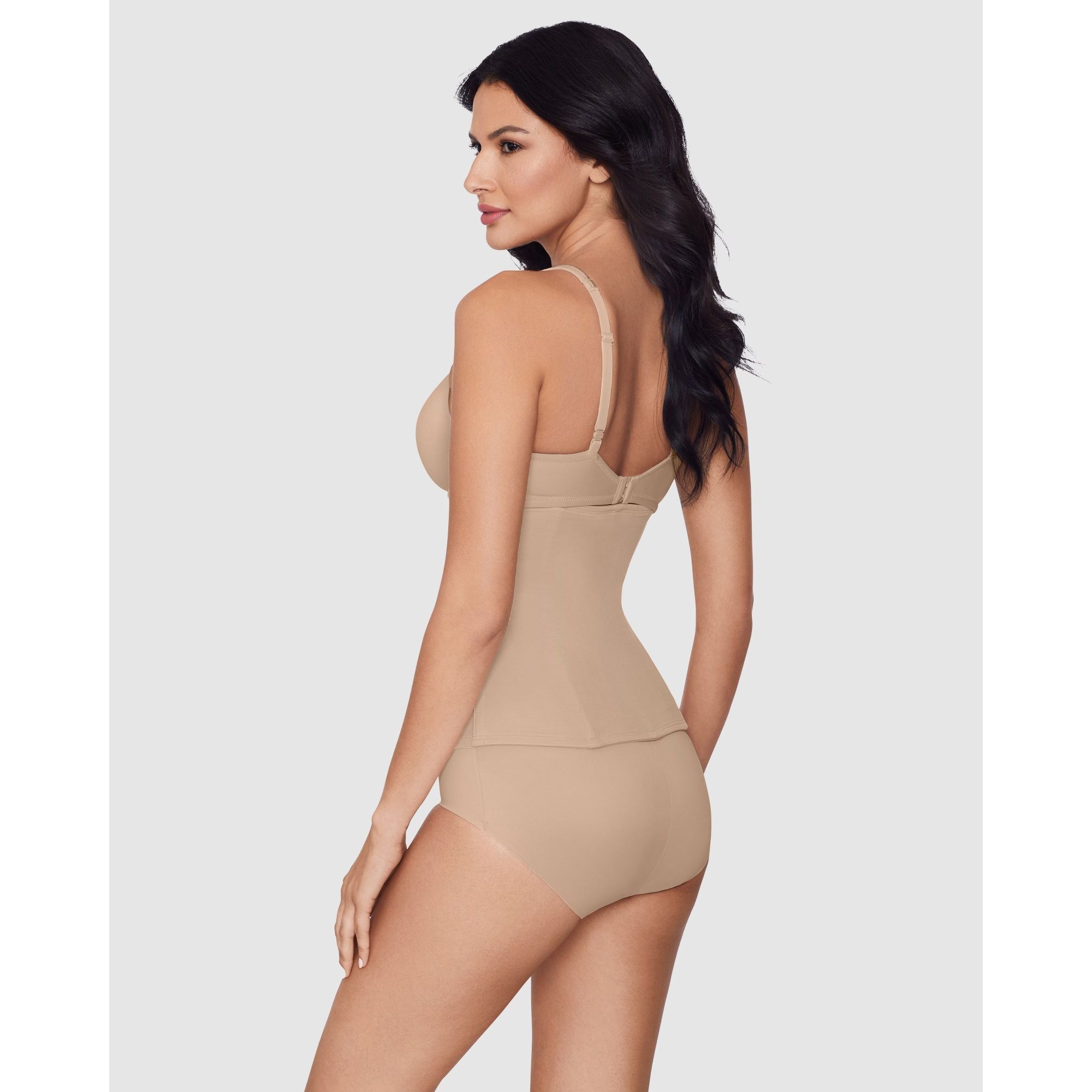 This comfortable and flexible garment from leading brand MiracleSuit is designed with inner-double-panel construction and includes side-release panels. It provides good back support and enhances your posture. This garment removes inches from your waist.