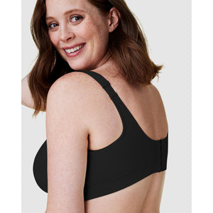 A thoughtfully-designed wirefree nursing bra that balances practical features and stretchy comfort with a feminine look and flattering shaping, this style is suitable for those looking for a full bust nursing bra thanks to its flexible and inclusive sizing, which covers B-H cups. Luxurious 360° stretch fabric (made with recycled nylon) hugs and supports your body, while the Bravado 'B' nursing clips are easy to use with one hand and have been tested to hold up to 25 lbs.