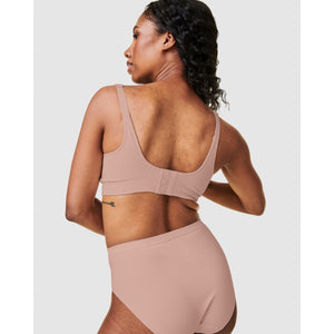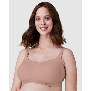 A thoughtfully-designed wirefree nursing bra that balances practical features and stretchy comfort with a feminine look and flattering shaping, this style is suitable for those looking for a full bust nursing bra thanks to its flexible and inclusive sizing, which covers B-H cups. Luxurious 360° stretch fabric (made with recycled nylon) hugs and supports your body, while the Bravado 'B' nursing clips are easy to use with one hand and have been tested to hold up to 25 lbs.