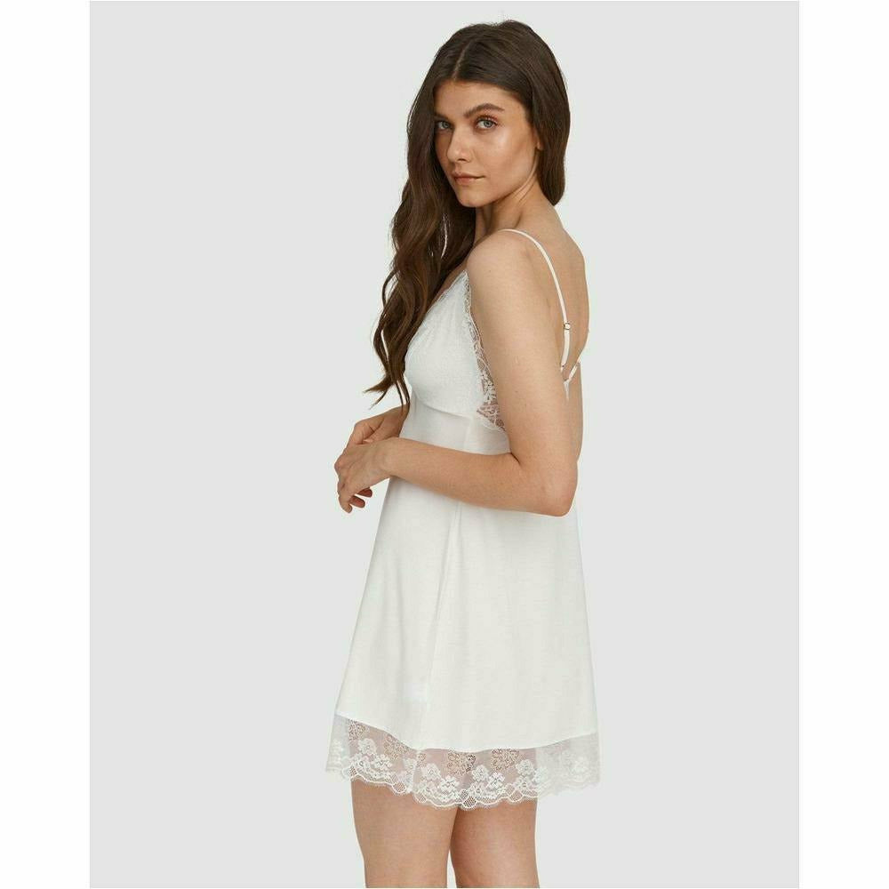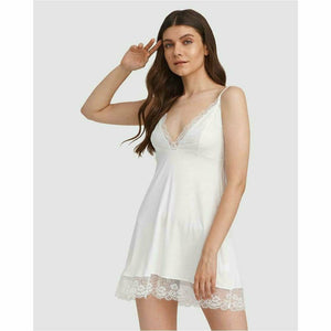 Indulge in a little bedtime glamour with this beautiful Lace Detail Chemise, from premium-quality Polish brand Vanilla Night & Day. Oeko-Tex certified, natural fibre-based fabric gently hugs your body, while scalloped eyelash lace adorns the hemline and cups, and creates a sheer panel that wraps around the sides and back.
