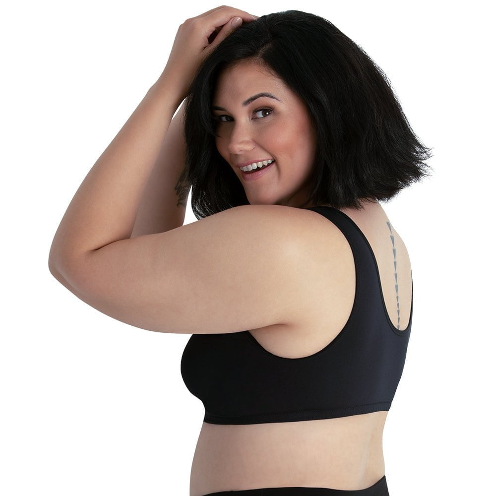 Enjoy light support and easy-going comfort all day or all night with this fabulous plus size bralette, which also works as a plus size sleep bra or nursing bra. The lined, full-coverage cups mean you won't spill out, and they're wirefree for a comfy fit. You'll also love how the wide, cushioned straps feel soft against your shoulders and don't dig in! The completely seamfree construction ensures a smooth look under your clothing, while the front fastening means there's no back closure to bother you while you sleep.