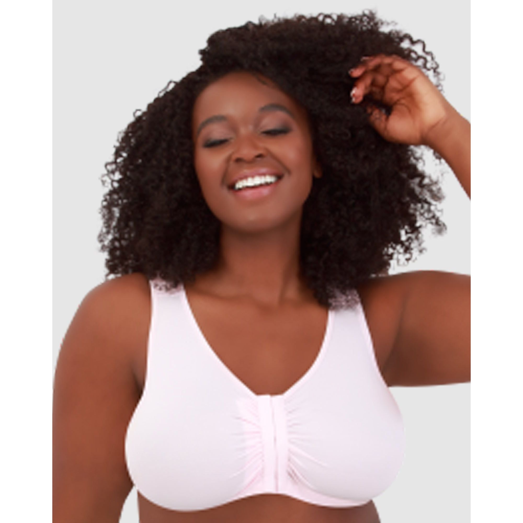 Enjoy light support and easy-going comfort all day or all night with this fabulous plus size bralette, which also works as a plus size sleep bra or nursing bra. The lined, full-coverage cups mean you won't spill out, and they're wirefree for a comfy fit. You'll also love how the wide, cushioned straps feel soft against your shoulders and don't dig in! The completely seamfree construction ensures a smooth look under your clothing, while the front fastening means there's no back closure to bother you while you sleep.