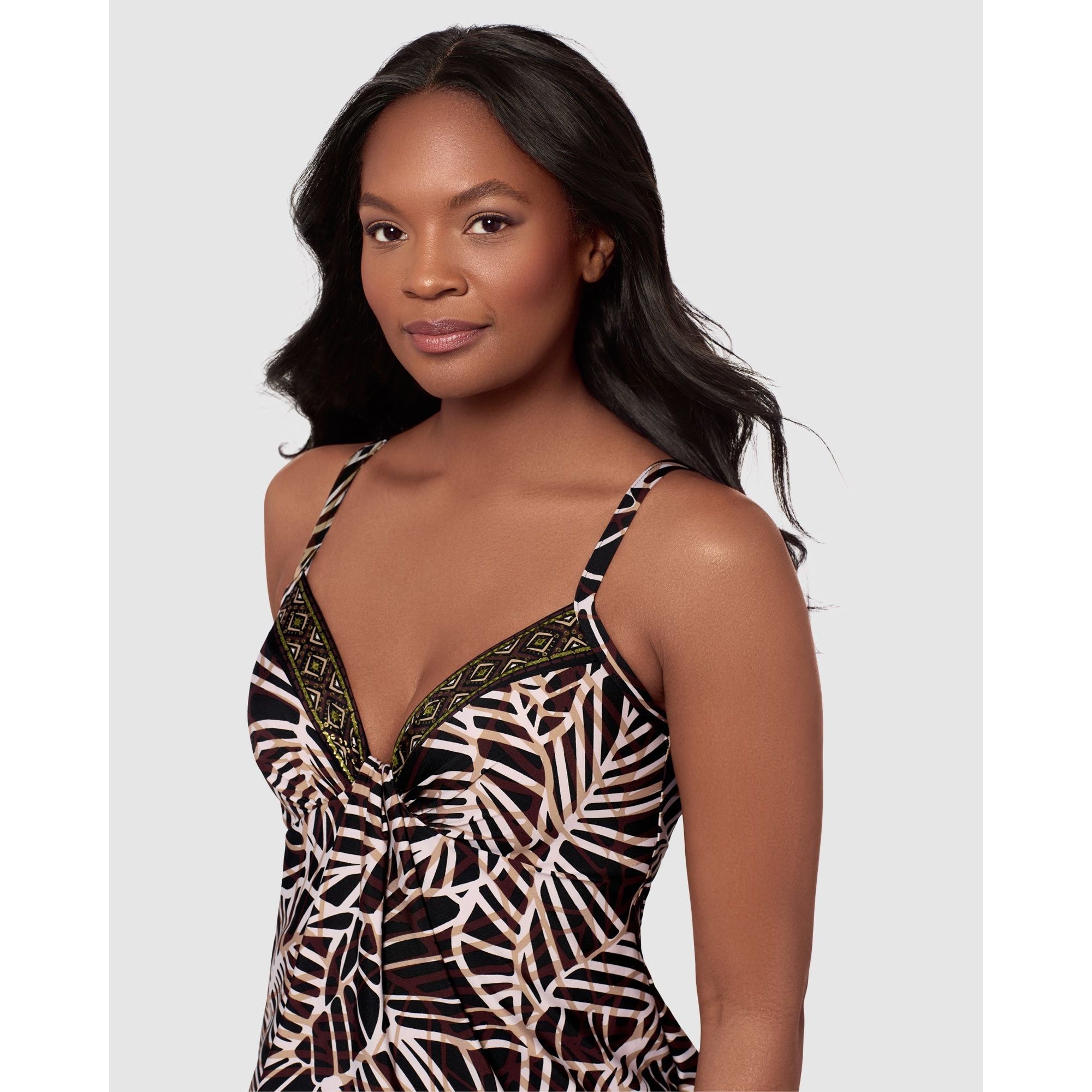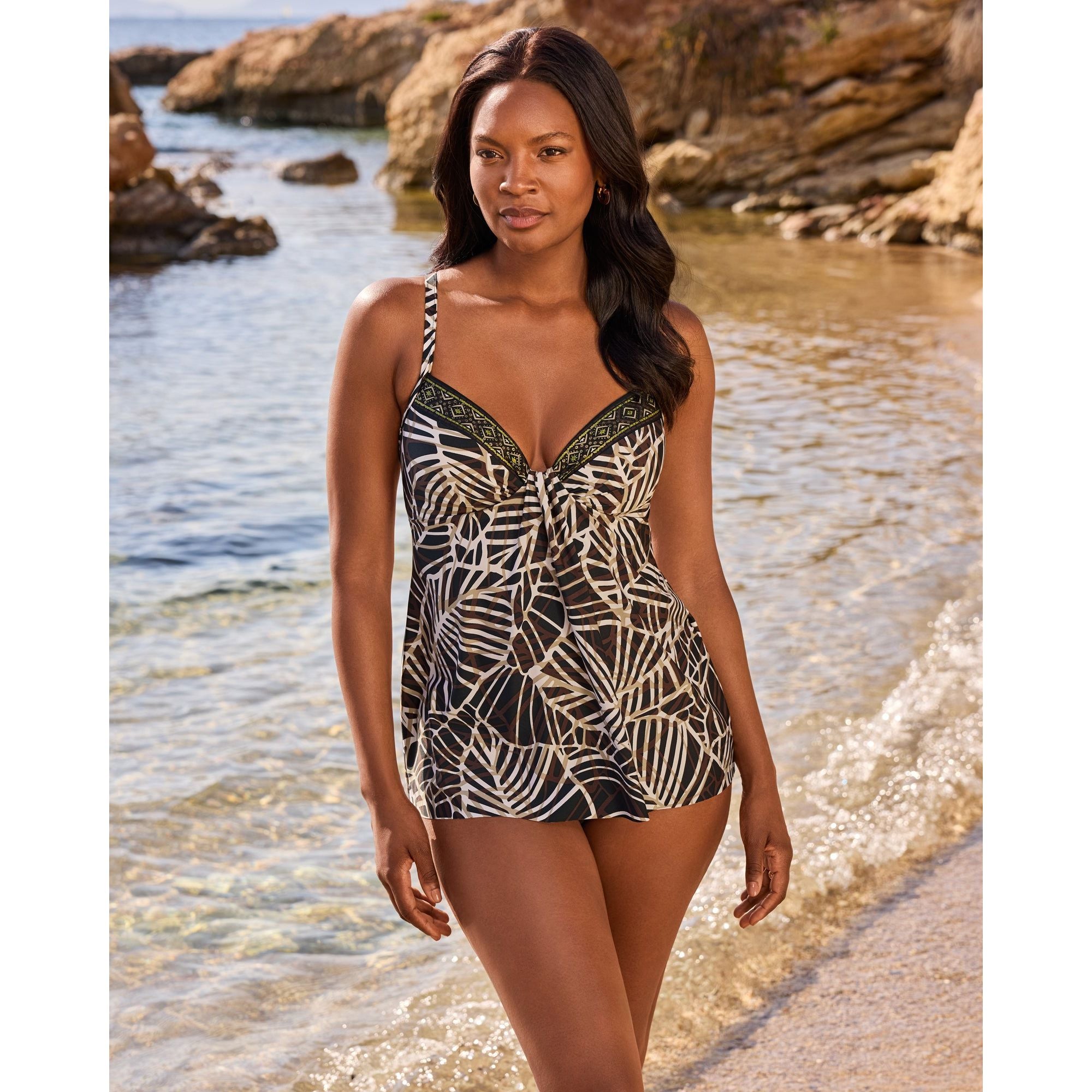 Enhancing your figure in not one, not two but three different ways, this floaty tankini top is designed to instil instant body confidence! Padded, underwired cups lift and shape your bust, unique shirring and wrapping accentuates your cleavage, while the draped front below comfortably conceals any tummy worries.
