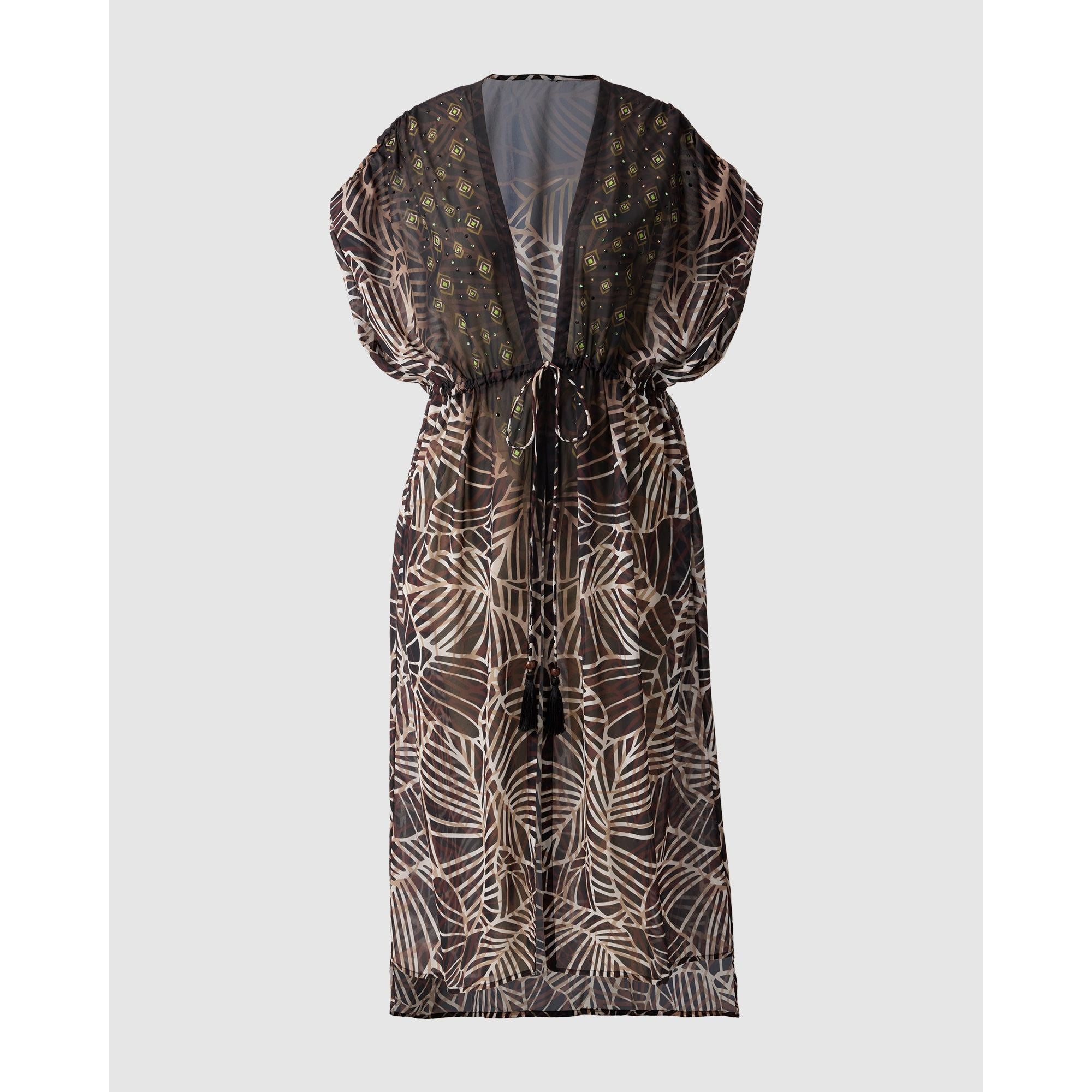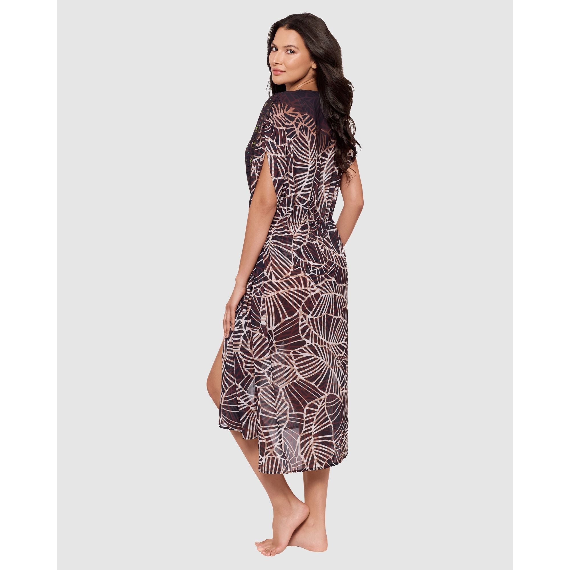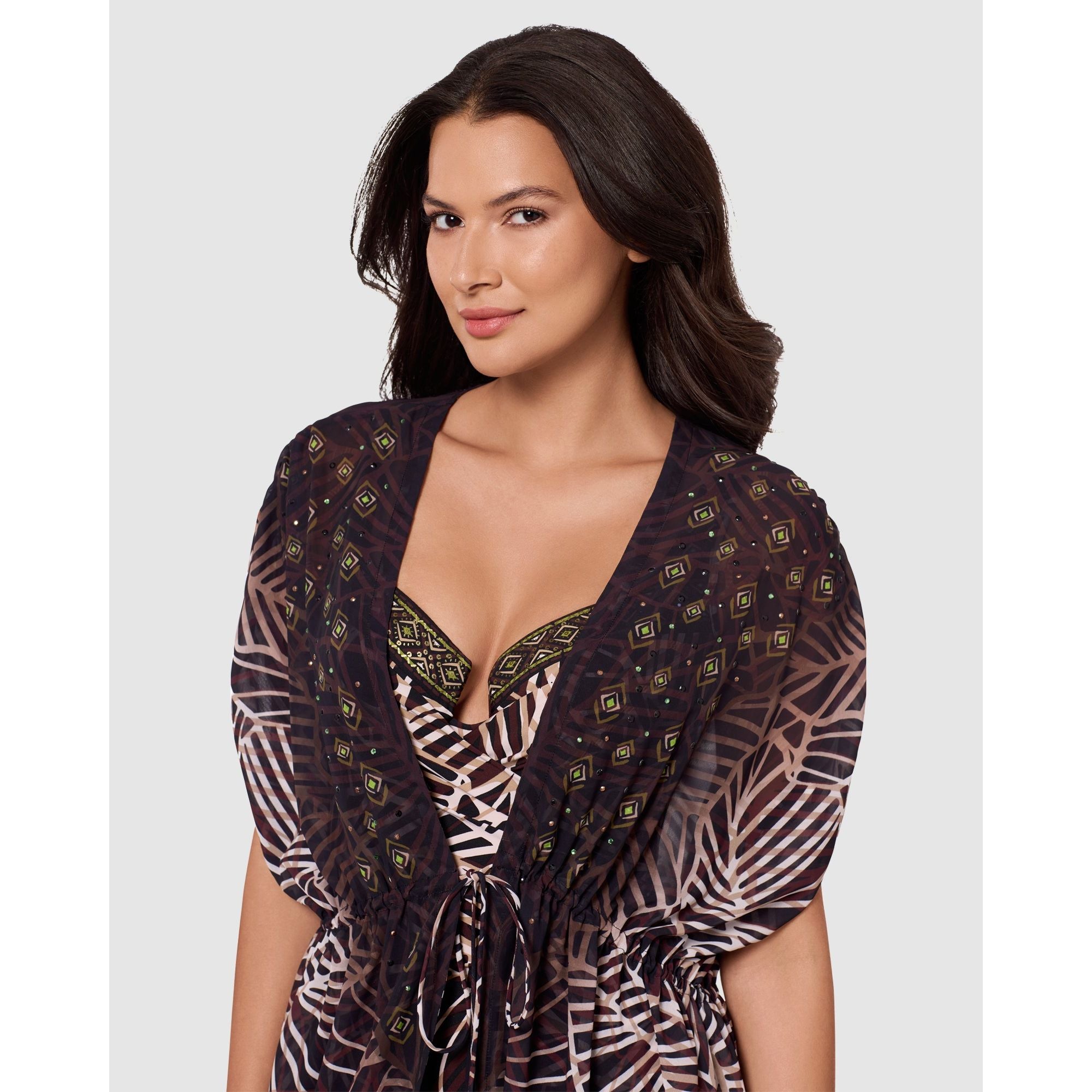 Perfect for pool parties, resorts, or just looking fabulous at the beach, this swim cover up is as comfortable as it is chic thanks to the easy, open-fronted fit which ties at the waist. Scattered crystals around the neckline and the beaded tassel ends on the waist ties both add a luxury vibe to this sheer beach robe - pair it with your favourite little black swimsuit, or wear it with the matching swimwear from the same collection.