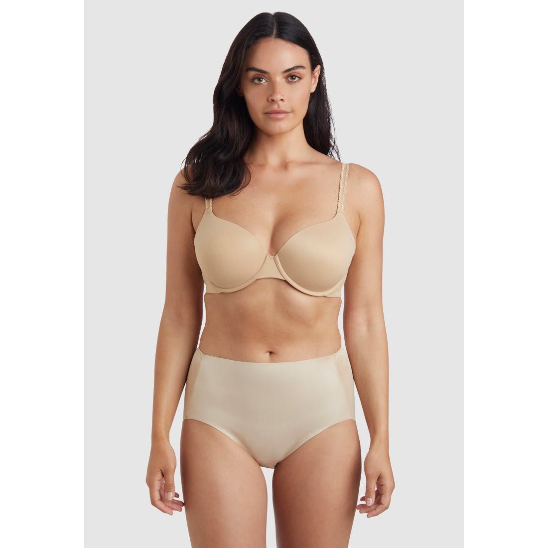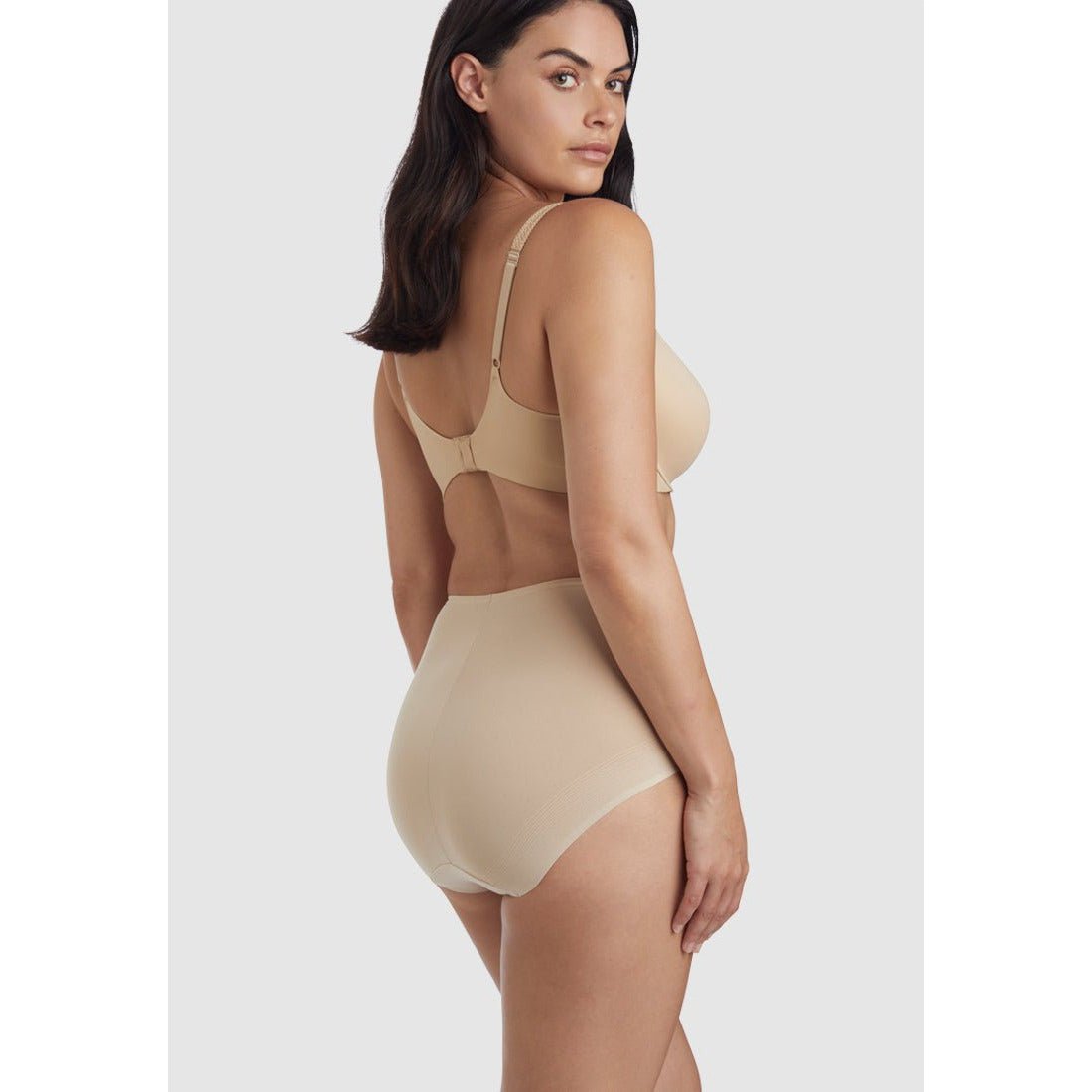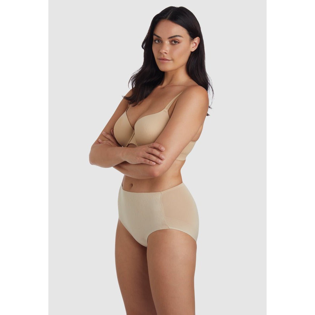 Feel fabulous every day of the week in this high waist shaping brief design, which delivers gentle tummy smoothing with a flexible fit thanks to the sprayed silicone adhesive Wonderful Panel inside the front. The single-ply rear won't flatten your curves, and the no-sew waistband and front leg openings both lie perfectly flat for no visible lines.