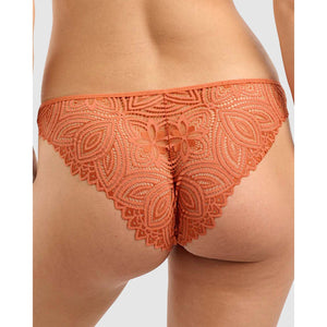 Flatter your curves with this leg-lengthening, cheeky cut Brazilian brief that's made with recycled fibres. Crafted from graphic lace with an insert of transparent tulle, it has flat side seams and a seamfree back legline for a smooth, VPL-free look under your clothing.
