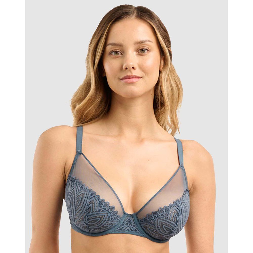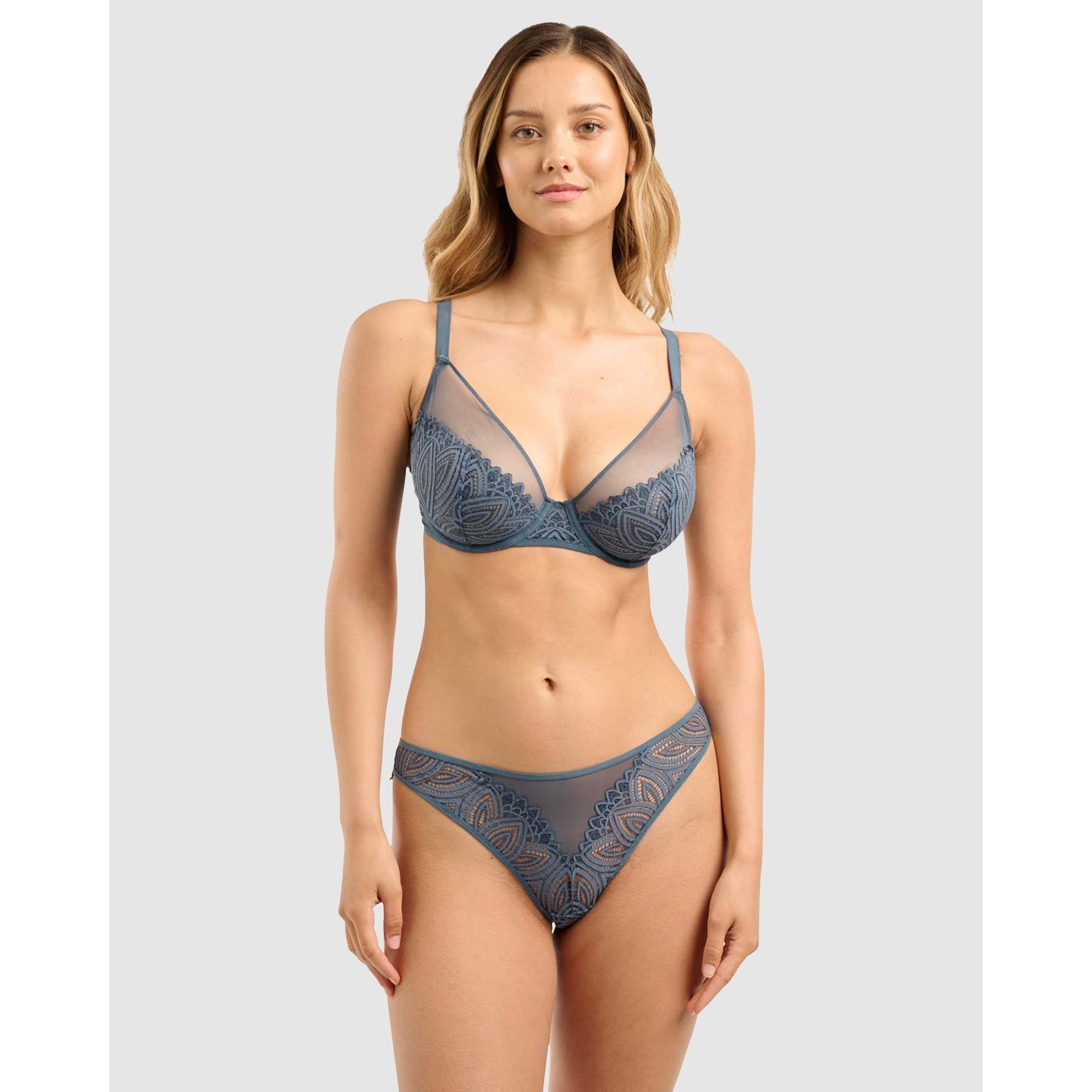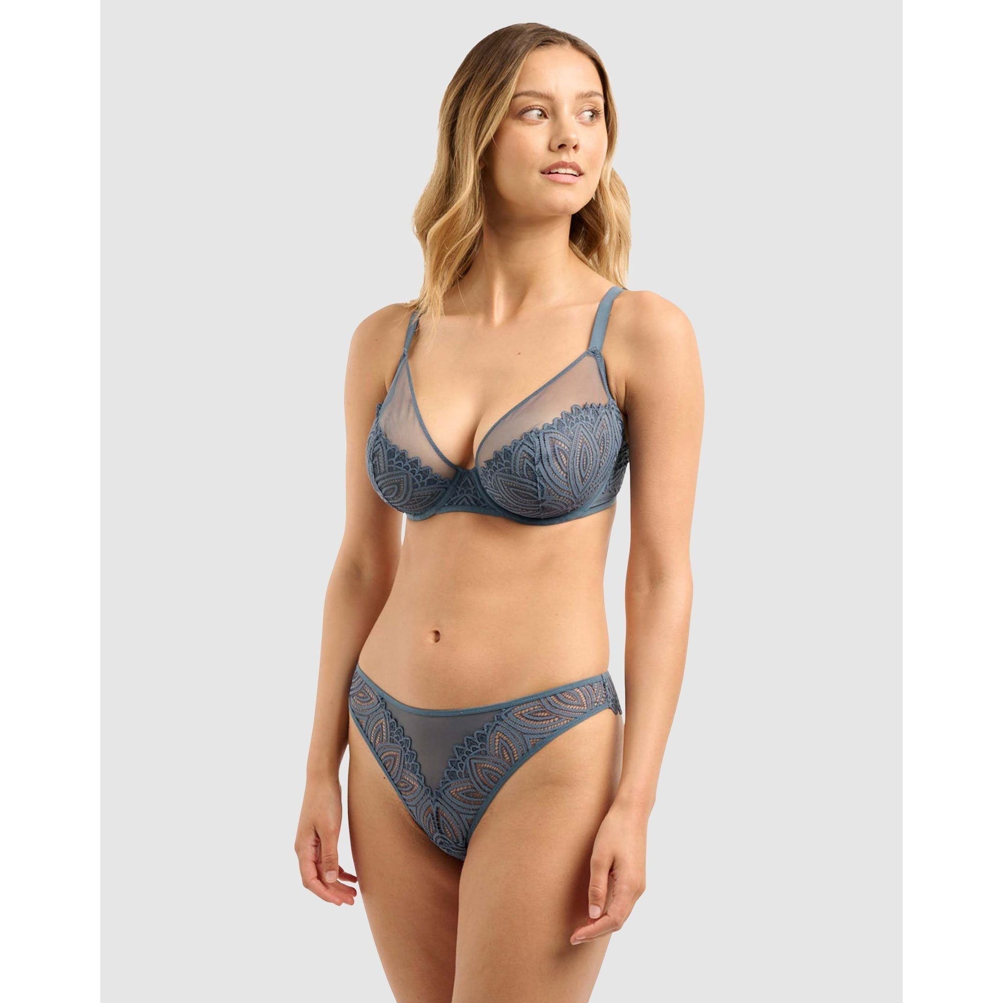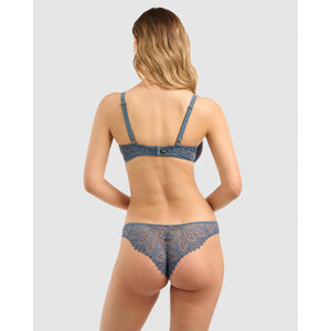 Your search for sustainable lingerie that’s also sexy and stylish ends here: this wired lace bra is made from a combination of sheer tulle and graphic lace which contain recycled fibres. It's a full cup bra for superior support, but is cut with a slightly lower neckline to maintain a youthful and flirtatious vibe.