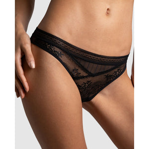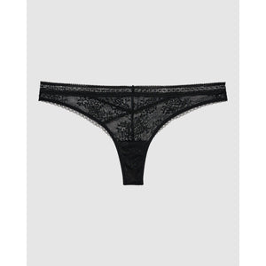 Combining elegant floral lace, a geometric lace trim, and a sheer striped tulle at the front, this tanga brief offers an alluring and contemporary take on classic French style. It has a cheeky, minimal coverage back, with elastic-free edges that lie flat for a smooth look under your clothing.