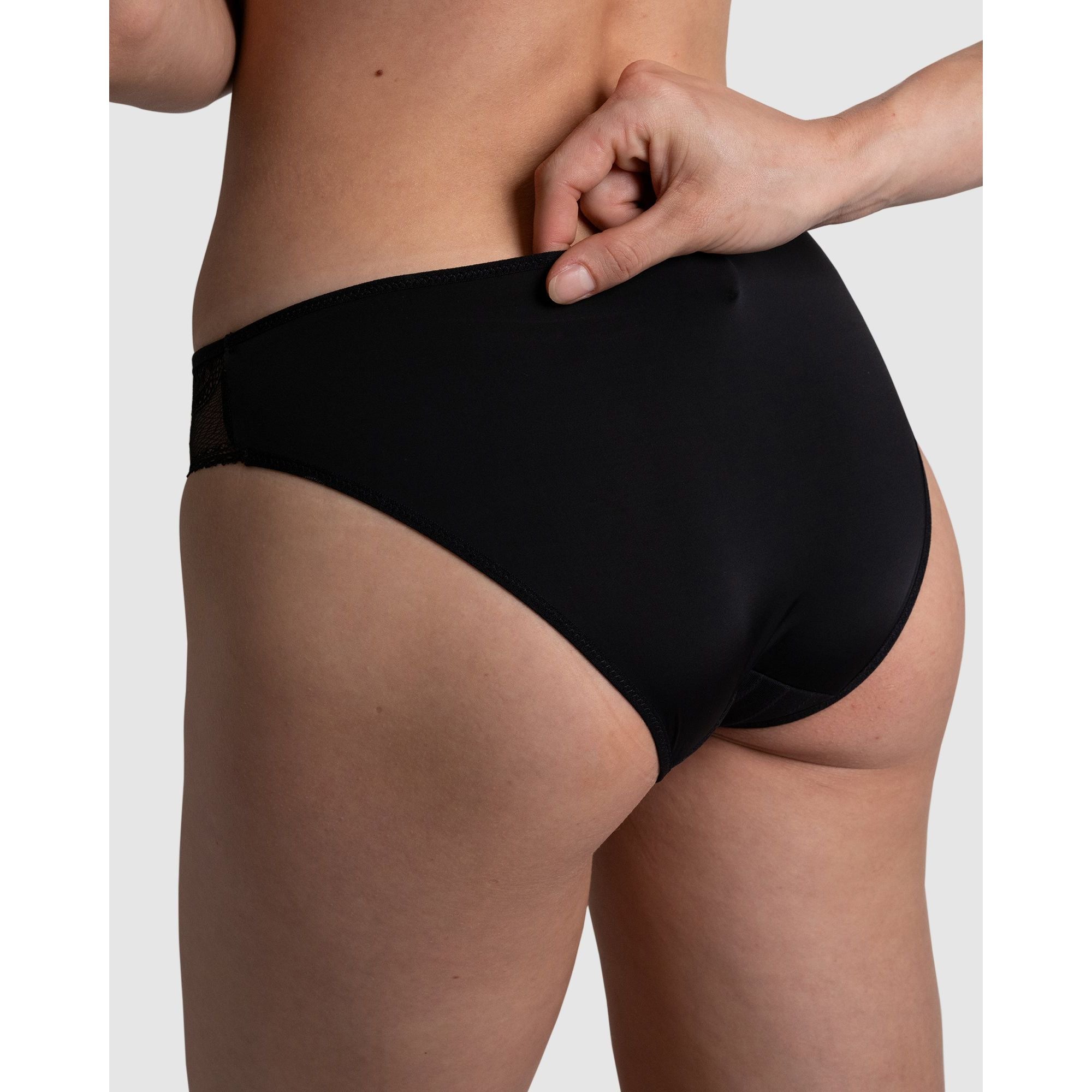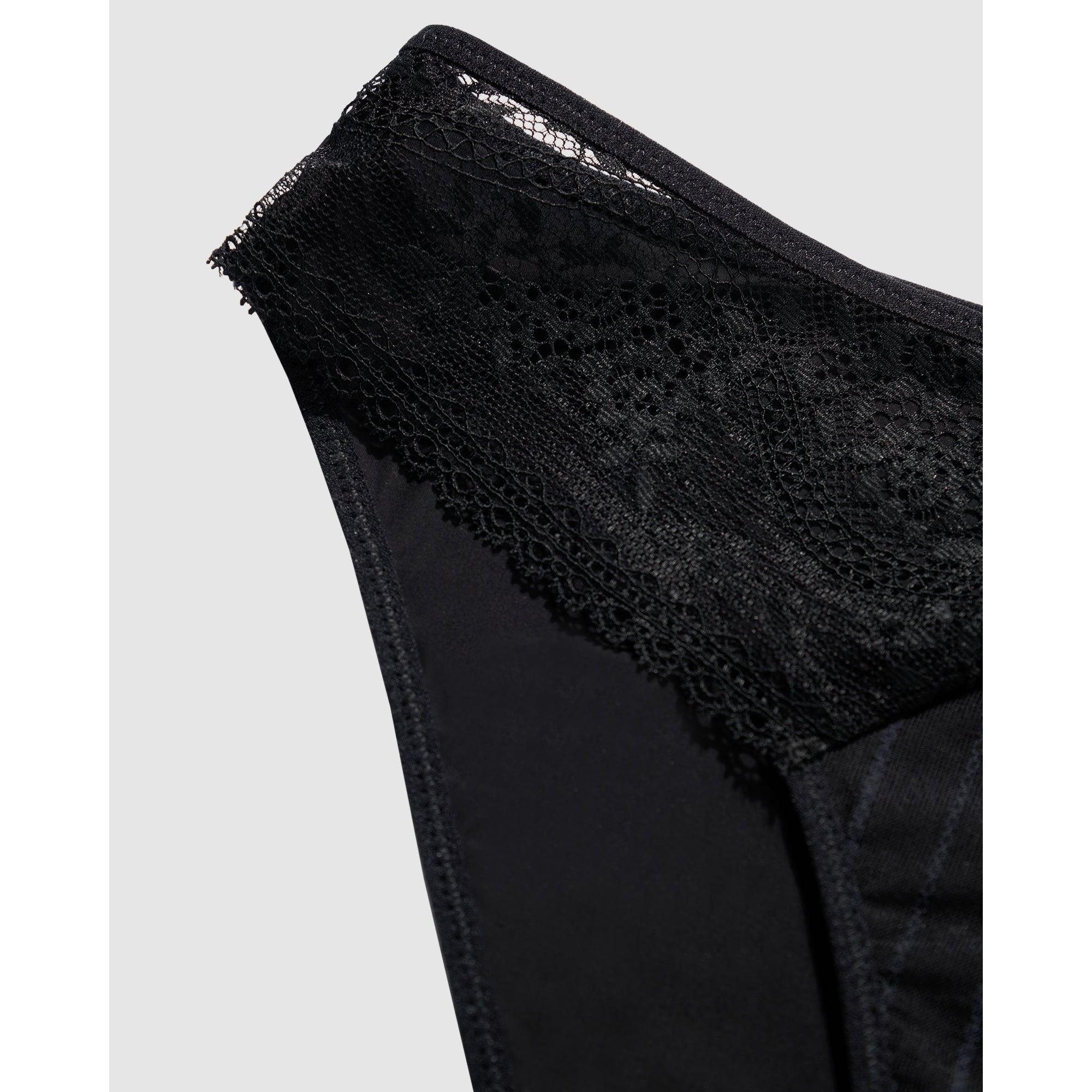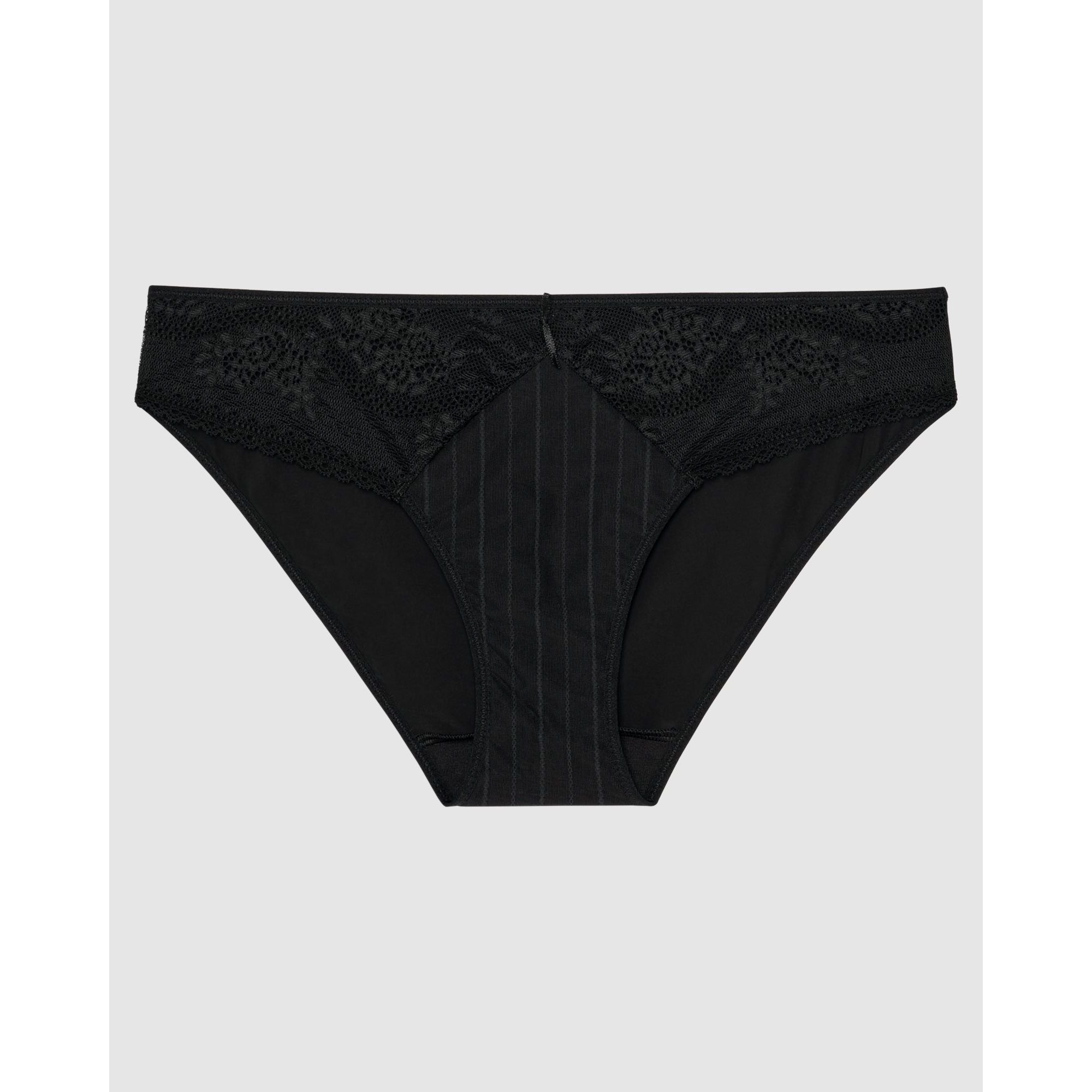 The comfort of a soft, smooth microfibre back meets the chic style of a sheer, floral lace front in this low-rise brief. The design is finished with a centre-front panel of cotton-lined striped tulle and a subtle ribbon detail at the waistband.