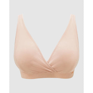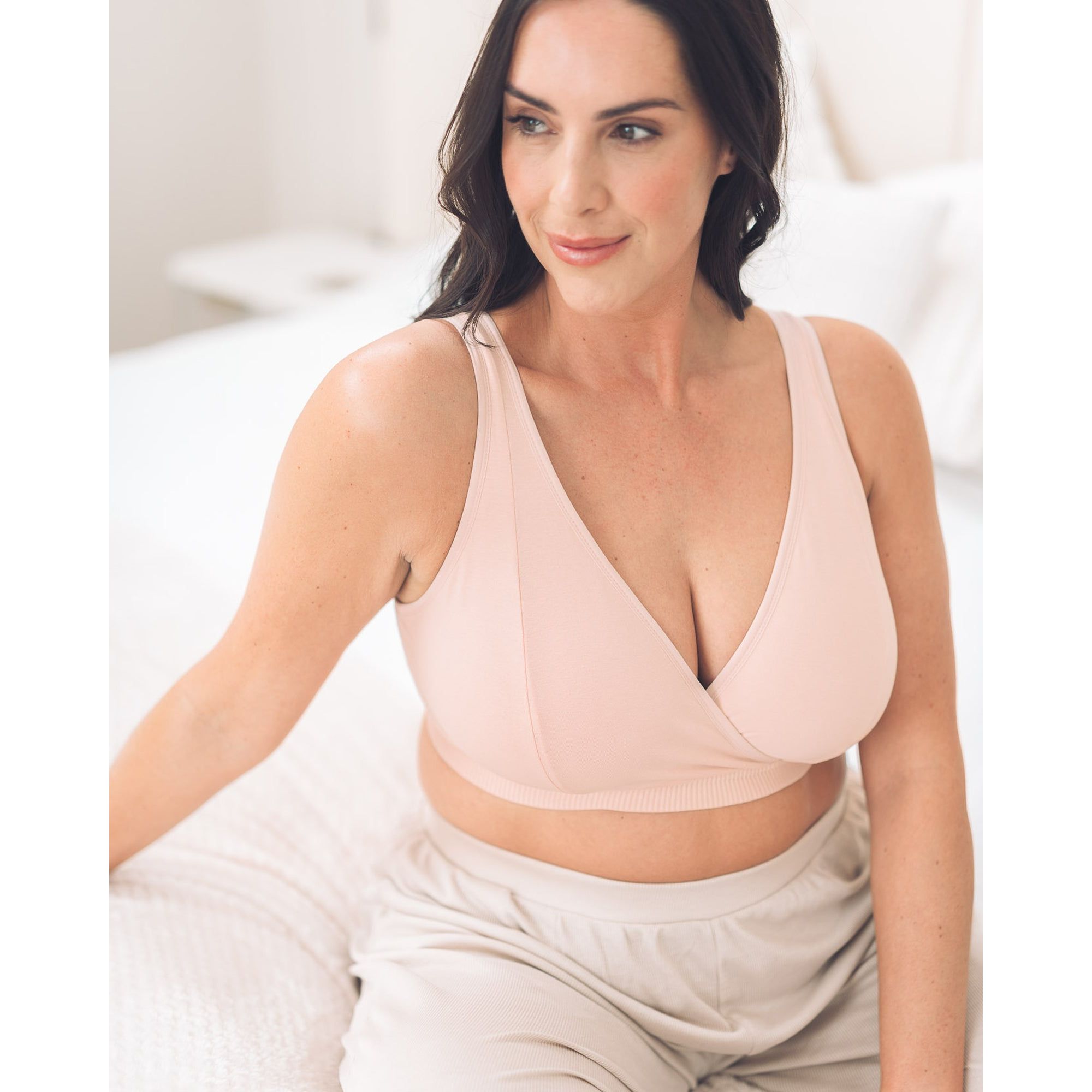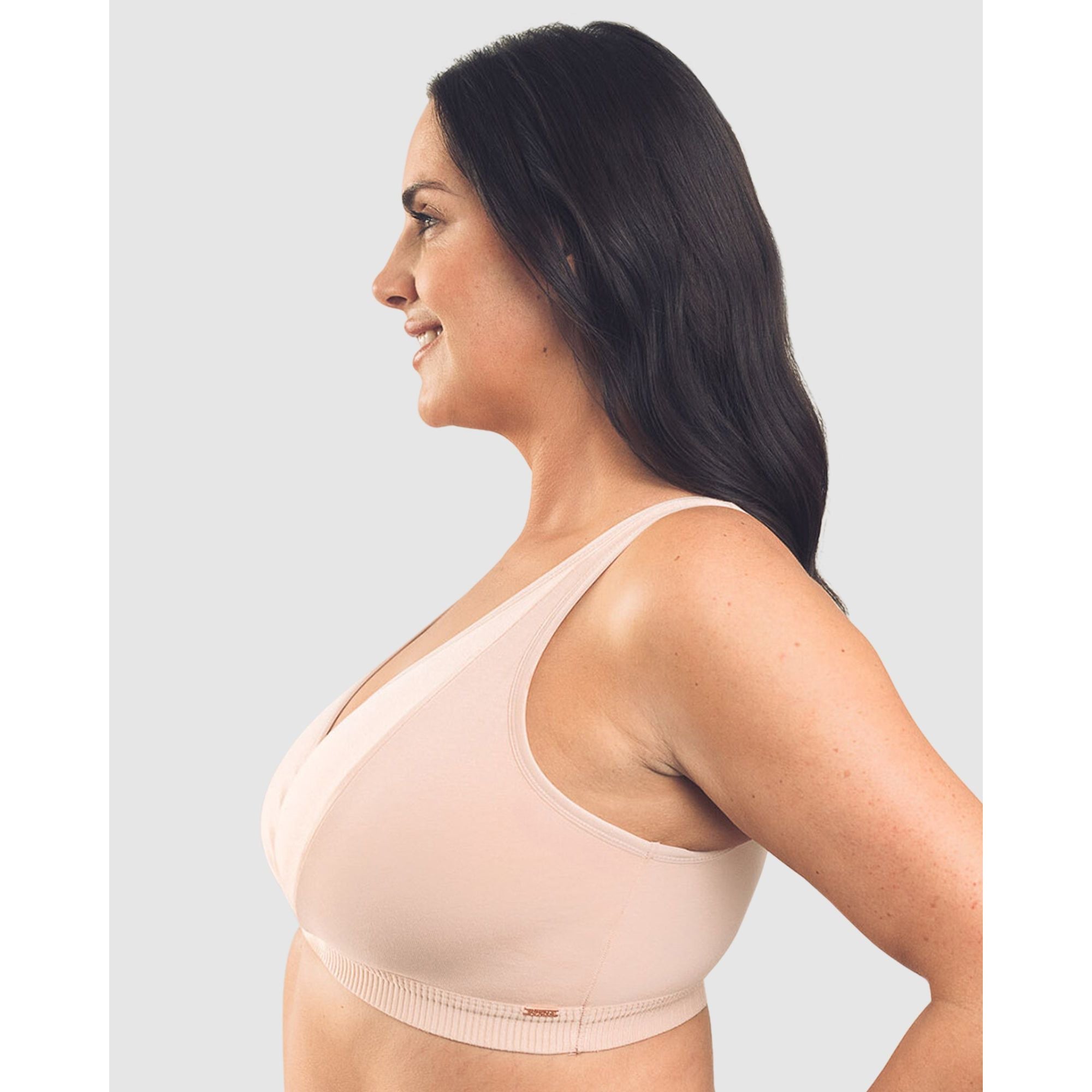 Whether you wear it as a sleep bra, lounge bra, everyday bra or nursing bra (thanks to crossover cups that are easy to pull away for breastfeeding), you'll love the relaxed fit and super-soft feel of this organic cotton comfort bra. It's a pull-on bra that's entirely free from hardware except for a small decorative charm at one side, and has wide straps plus a soft but snug band for gentle support.