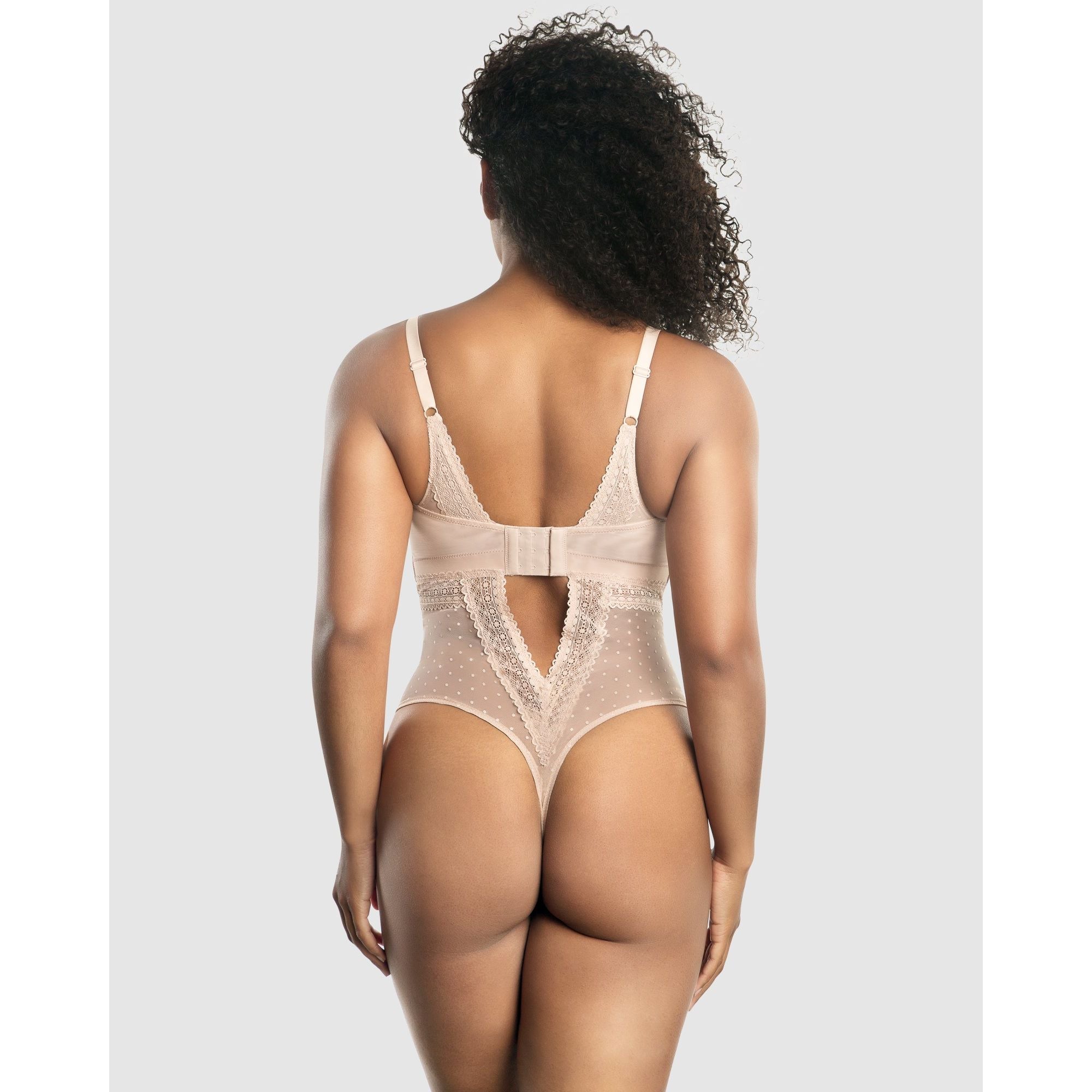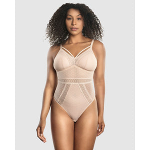 Change your look to suit your mood with the Mia Wireless Thong Bodysuit by Parfait, which includes soft foam cups that are either removable (for a fully-sheer look) or reversible with a different colour on either side. A bra-style closure at the back enhances support for fuller busts, while the sexy thong cut avoids visible panty lines.