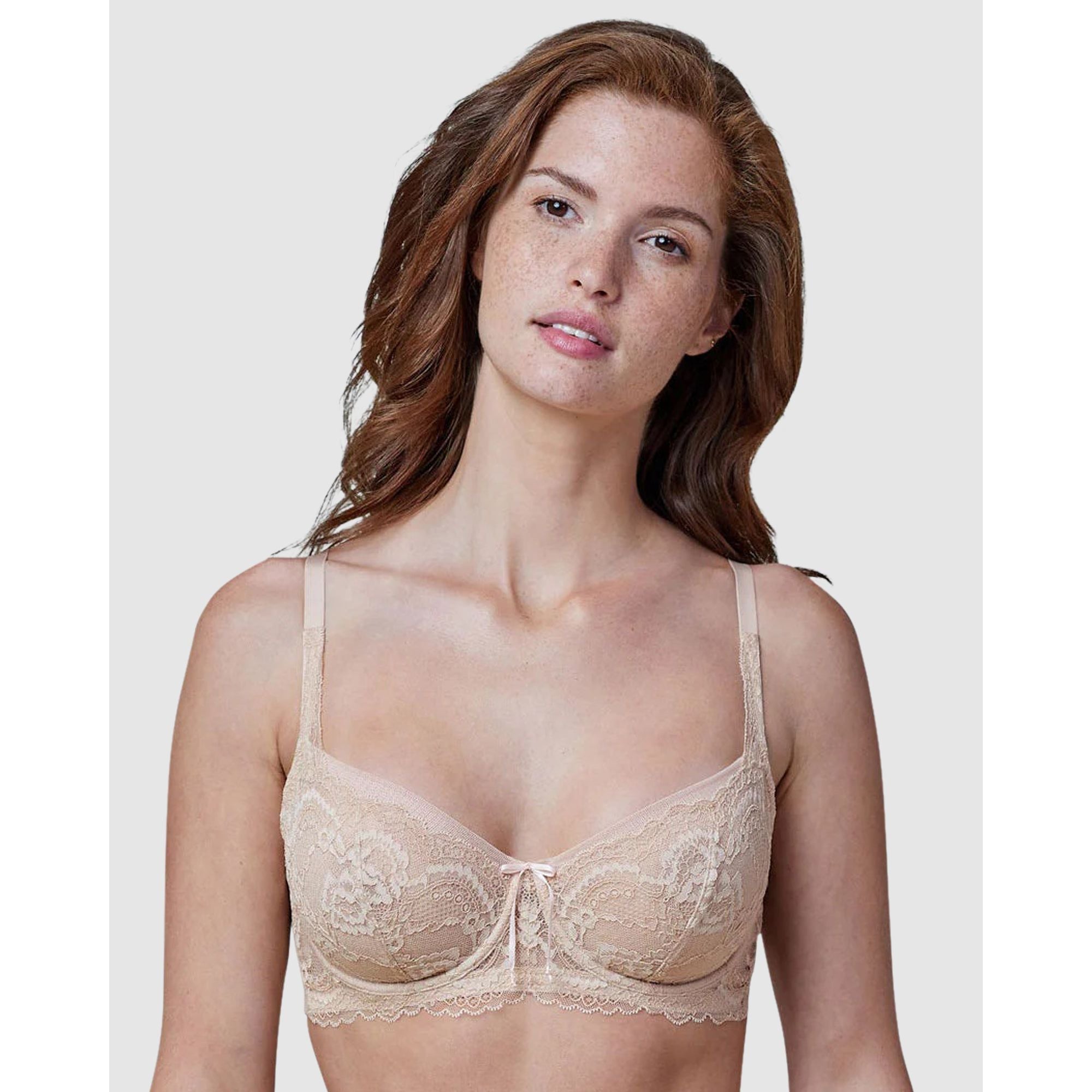 Get great lift and support without any padding in this lace balconette bra, with cups lined with mesh and a double-lined band in sleek fabric for a smoothing effect. The straps are adjustable via chic rose gold hardware, and a long ribbon bow adds another feminine touch to this pretty bra design.