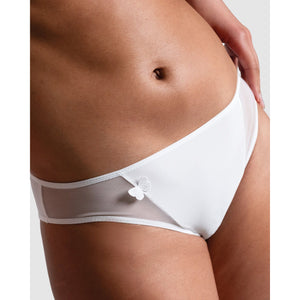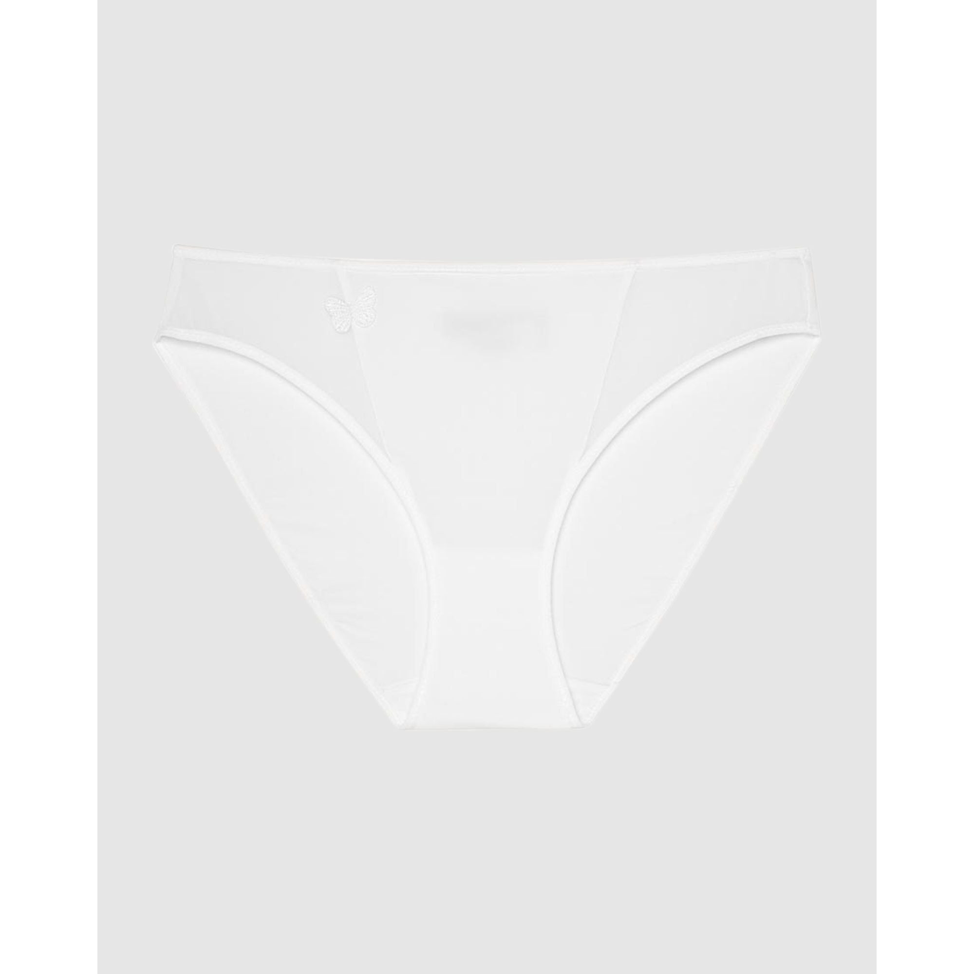 Offering second-skin comfort and a playful look, this classic bikini brief has soft, opaque microfibre at the front and back, plus sheer tulle inserts at the sides. It's finished with a signature Passionata touch: a whimsical embroidered butterly at one side.