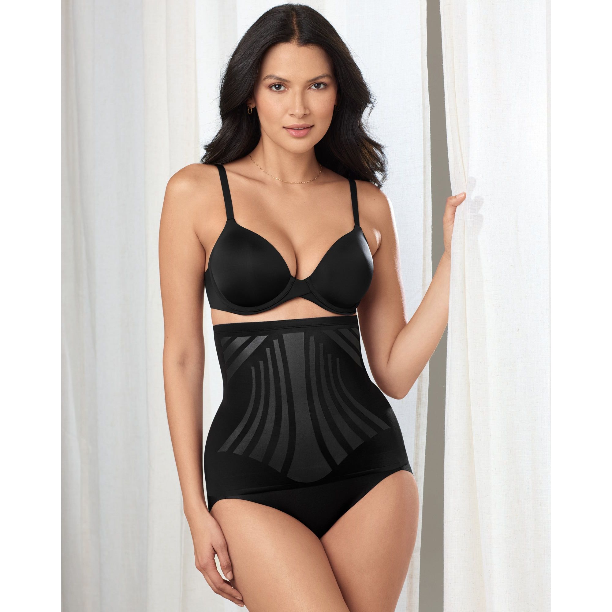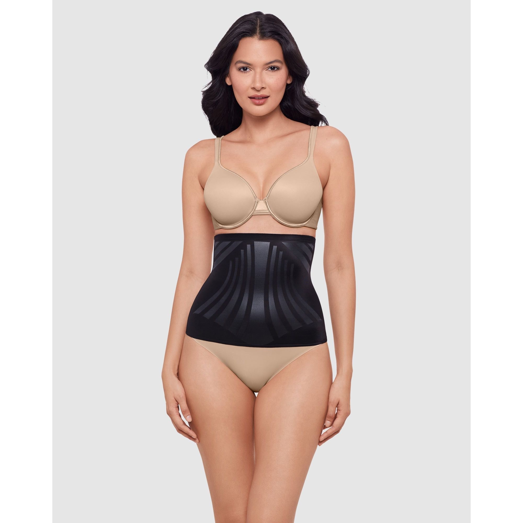 Step into an instantly-sleeker, slimmer silhouette with this waistline cincher, featuring flexible back support stays for better posture, and printed LYCRA FitSense® panels at the tummy which provide targeted shaping without adding bulk. Wonderful Edge® silicone at the hem prevents this extra-firm control faja from shifting or rolling up, for incredible shaping that stays invisible under your outfit.