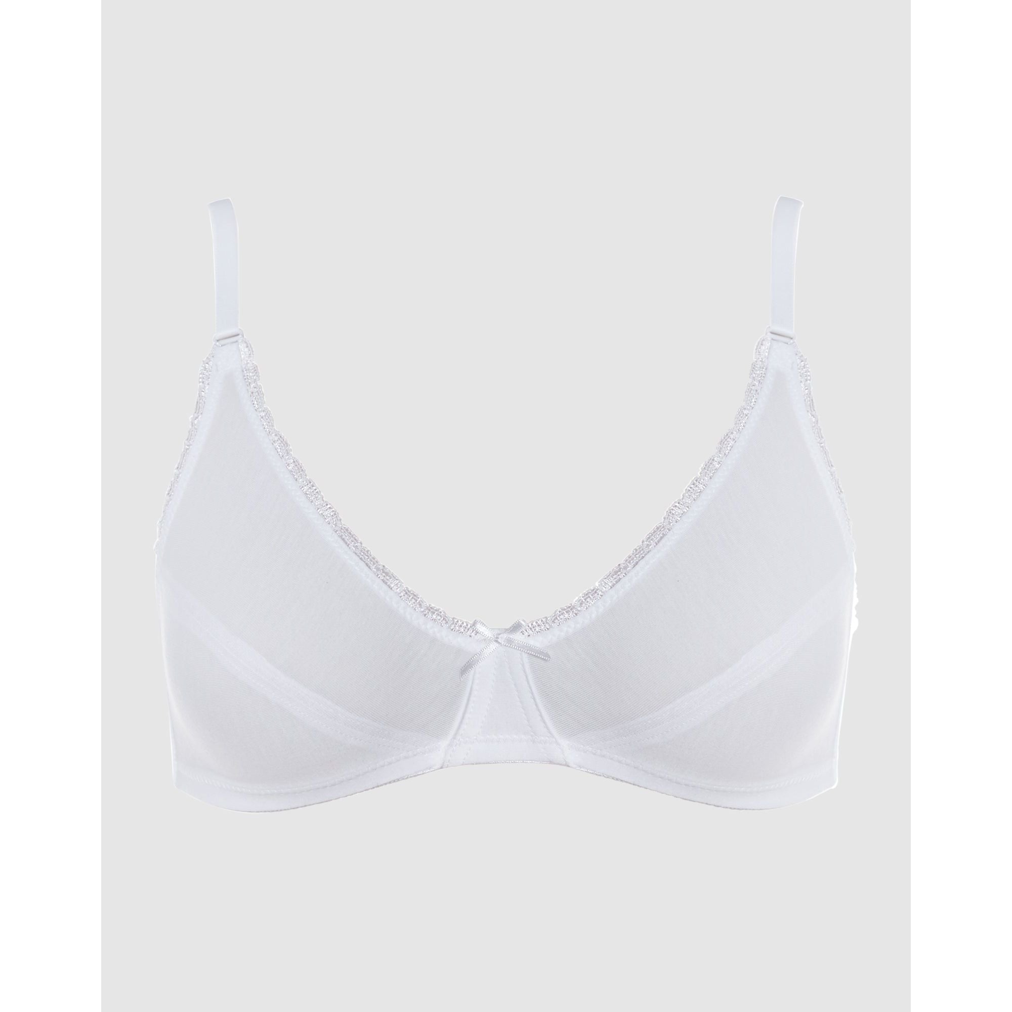 Designed to be the very first bra a girl will own, or when switching from a crop-top style training bra to one with band and cup sizing, this soft and comfy bra is made from pure cotton fabric and adorned with a narrow lace trim and ribbon bow. Available from a AA cup, the design has unlined, seamed cups, adjustable shoulder straps and an adjustable hook fastening to perfect the fit.
