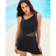 Turn the beach into your catwalk in this fabulous asymmetric swim dress, a skirted swimsuit that flattens your tummy and conceals your hips with its elegant draping. Mesh panels add a modern vibe while highlighting your waistline, and the underwired swimdress design ensures fabulous, supported curves at your bustline too!