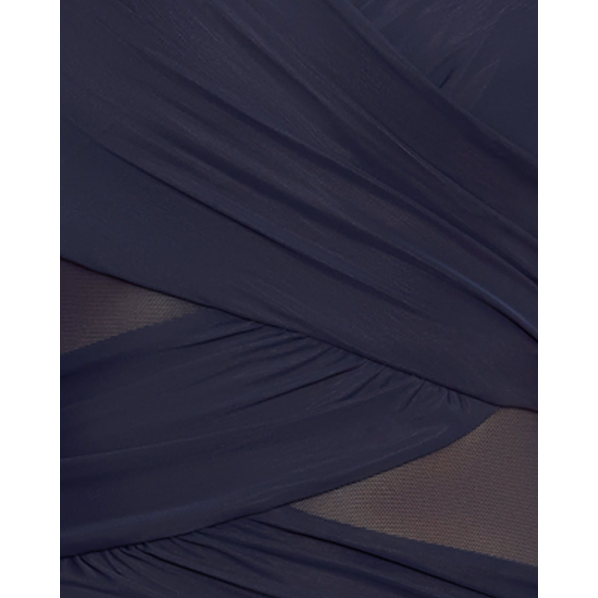 Fabric composition: Body - 69% Nylon, 31% Spandex. Drape - 82% Nylon, 18% Lycra® Spandex. Mesh - 89% Nylon, 11% Spandex