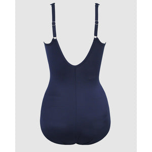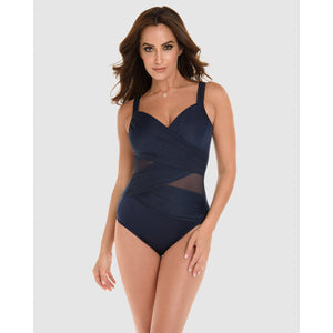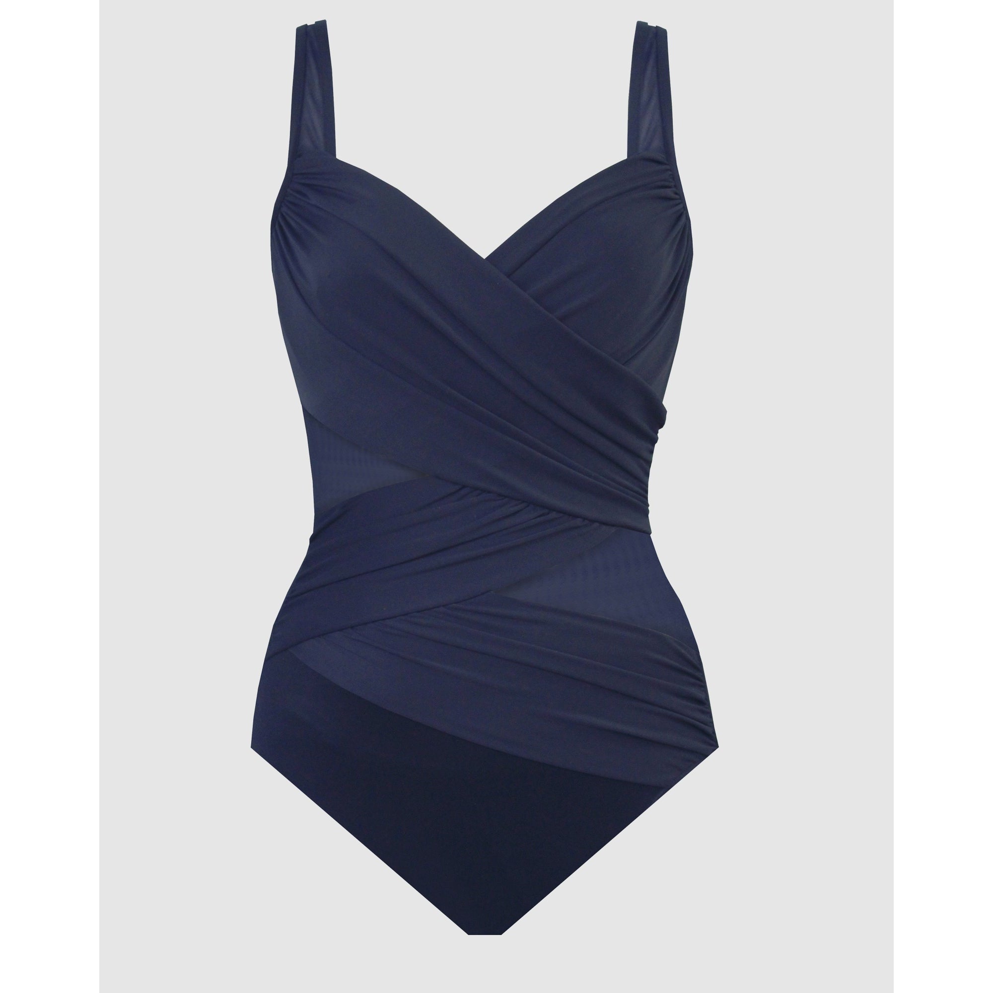 This underwired swimsuit will sculpt a beautiful silhouette, thanks to powerful shaping fabric that's complemented by curve-enhancing draping. Made from a single layer of Miratex fabric, it's a control swimsuit which smooths and slims all over, while the ruched crossover design and triangle mesh inserts create the illusion of a smaller waistline. With hidden underwire to support and lift your bust.