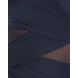 Fabric composition: Body - 69% Nylon, 31% Spandex. Drape - 82% Nylon, 18% Lycra® Spandex.