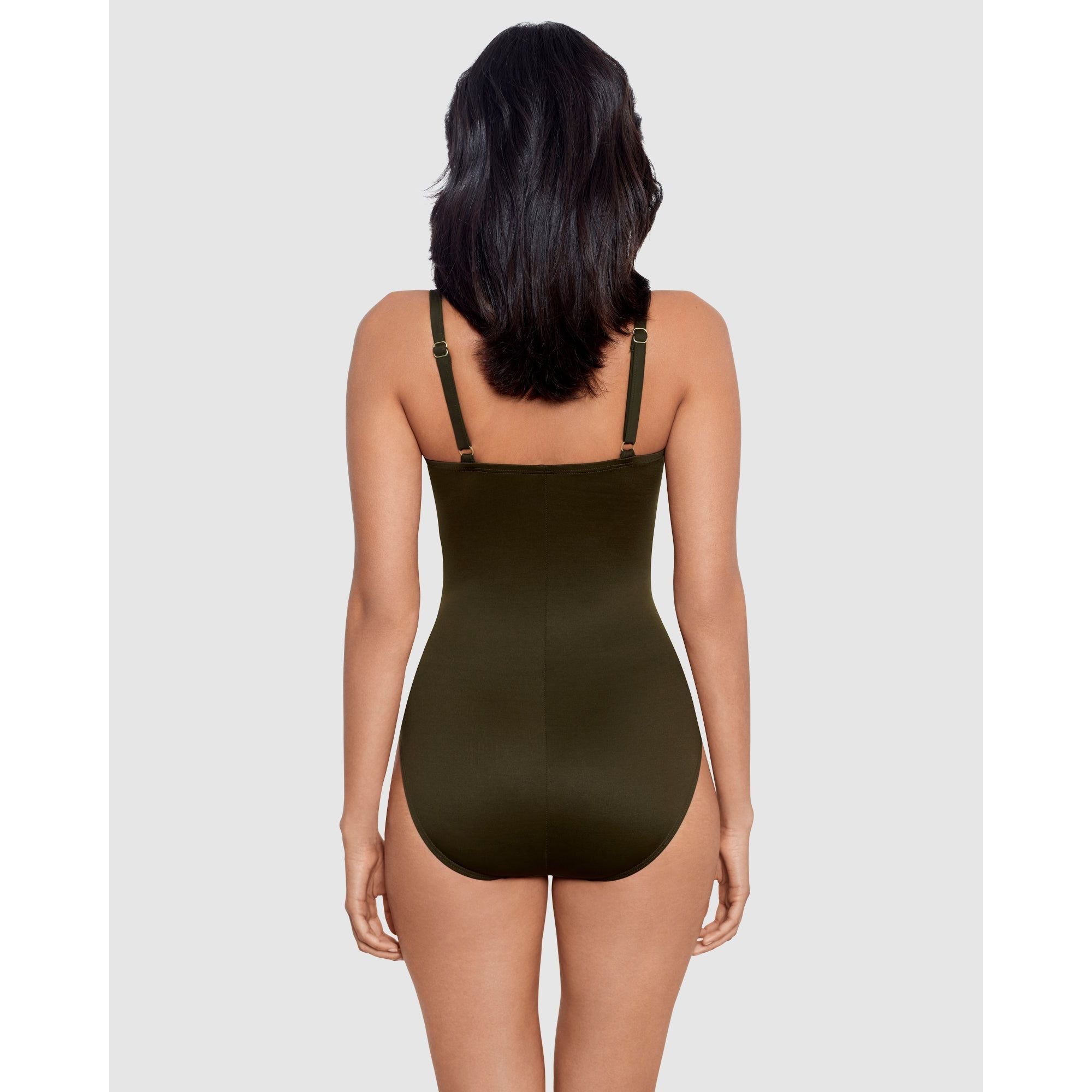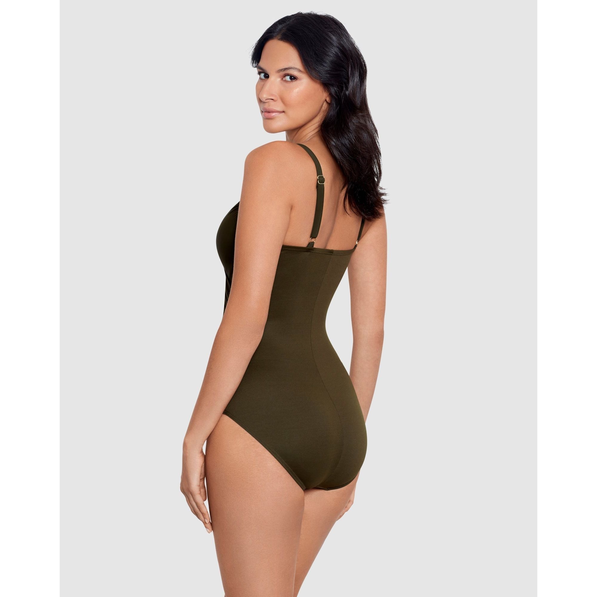This shaping swimsuit with hidden underwire will nip, tuck and lift your silhouette to perfection. Made from comfy yet ultra-firm Miratex® control fabric for all-over slimming, the clever combination of wrapover draping and sheer mesh inserts also creates the illusion of a smaller waistline.