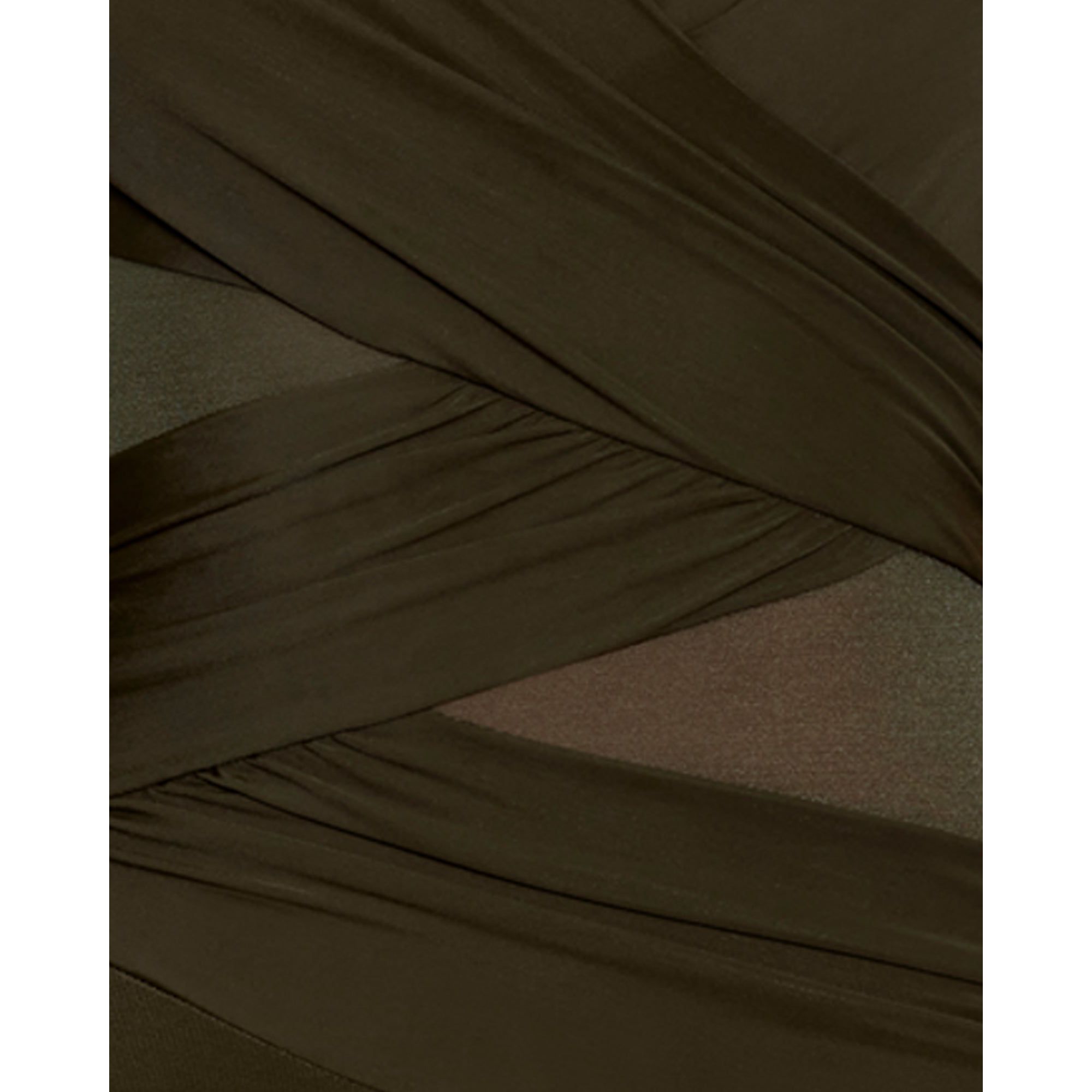 Fabric composition: Body - 69% Nylon, 31% Spandex. Drape - 82% Nylon, 18% Spandex.