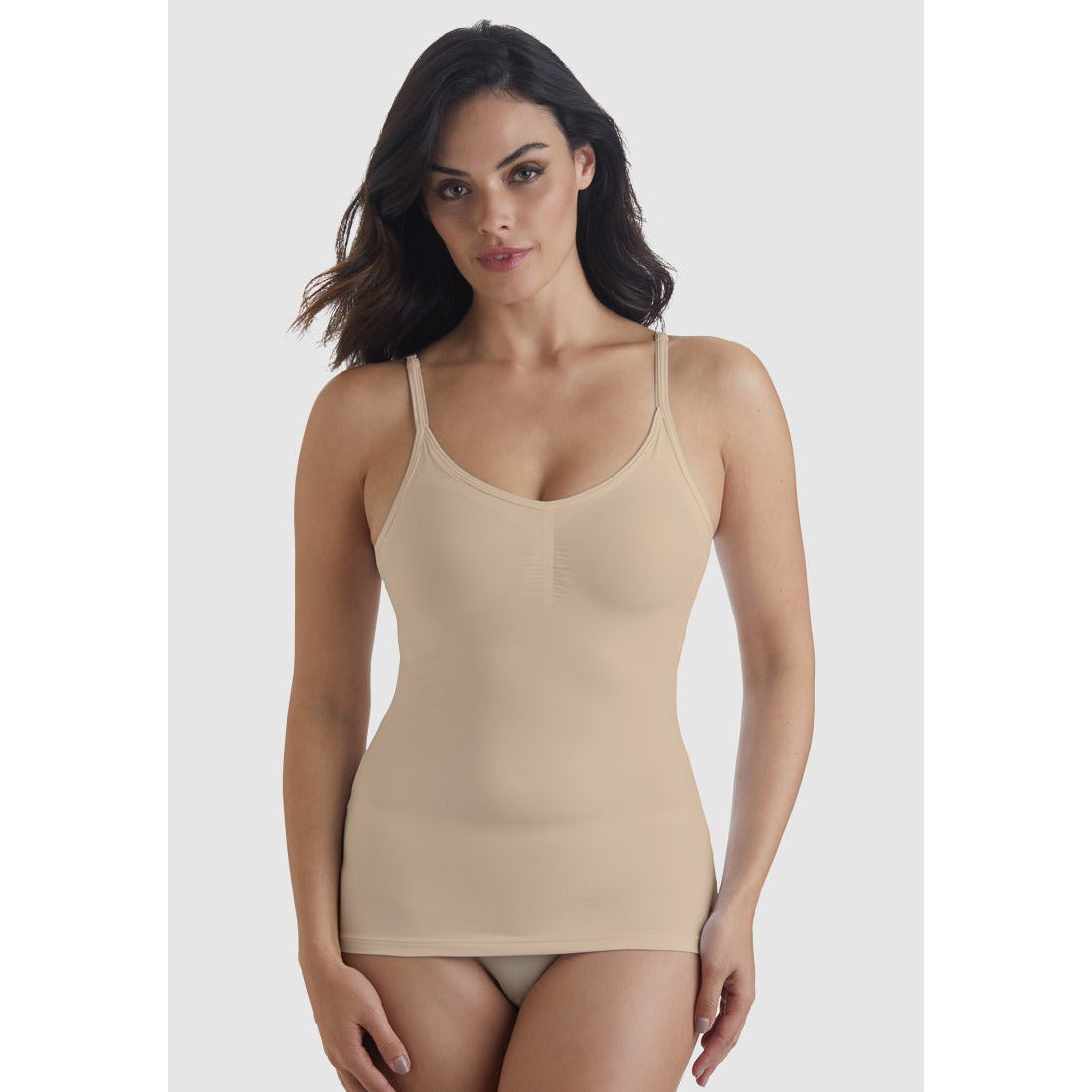 All the shaping of a bra, but with added underarm, back and tummy smoothing! This shapewear camisole with padded cups compresses everything you want compressed, without flattening your bust. Not only does it boast firm waist and tummy control, but it also features tall sides with special panels to erase underarm bulges, for a silhouette that's smooth and trim all over.