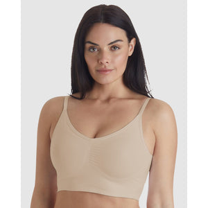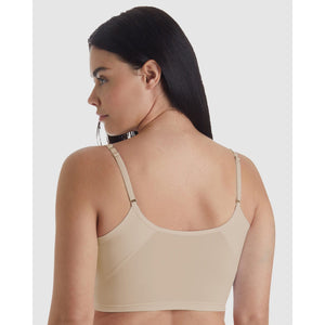 Half way between a bralette and a shapewear camisole, this innovative shapewear crop top delivers firm side and back smoothing to erase underarm bulges and 'back fat'. Designed to be worn alone, without a bra, it also features foam-padded cups so that your bust stays looking full and curvy instead of flattened.