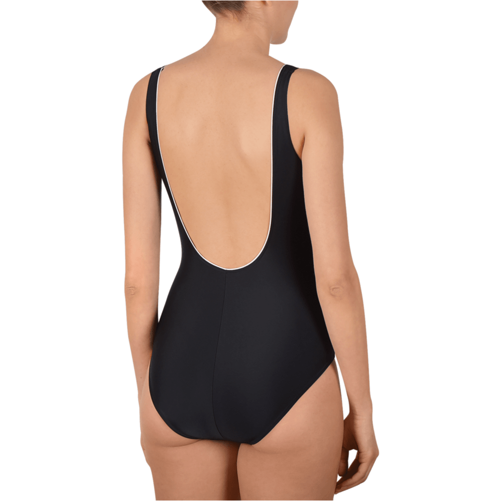 Show off both your sporty side and a sleeker silhouette by the water in Naturana's One-Piece Control Suit. Built-in shaping smooths out your tummy, while stylish and strategically-placed piping visually sculpts a more nipped-in waist.